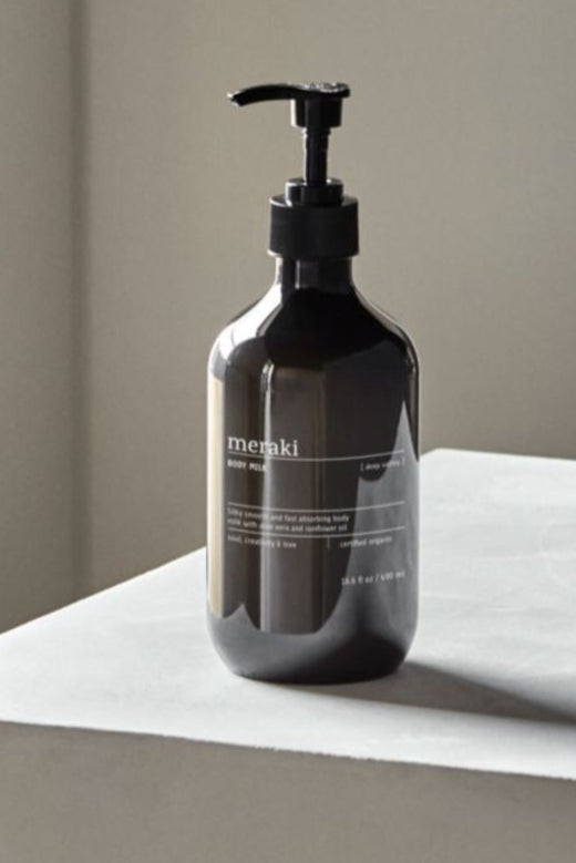 Produkty Meraki wyróżniają się charakterystycznym, minimalistycznym designem. Ciemne szklane butelki z eleganckimi etykietami oraz białe opakowania o prostych liniach tworzą spójną kolekcję, która harmonijnie komponuje się z wystrojem łazienki. Ergonomiczne dozowniki i praktyczne opakowania łączą funkcjonalność z estetyką, podkreślając skandynawskie dziedzictwo marki. Każdy detal został przemyślany tak, aby produkty nie tylko skutecznie pielęgnowały, ale również stanowiły elegancki element wystroju wnętrza.