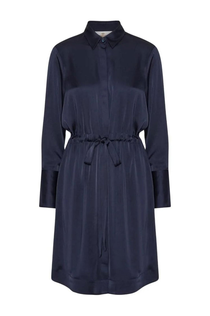 Tekstury materiałów w granatowych sukienkach
