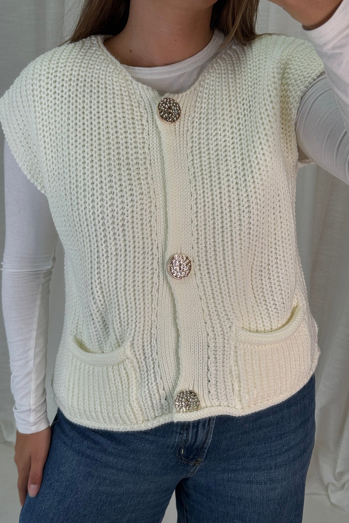 Biała kamizelka od A-bee, wykonana z akrylu, zapinana na guziki z przodu. Kamizelka ma okrągły dekolt, jest bez rękawów i ma regular fit.