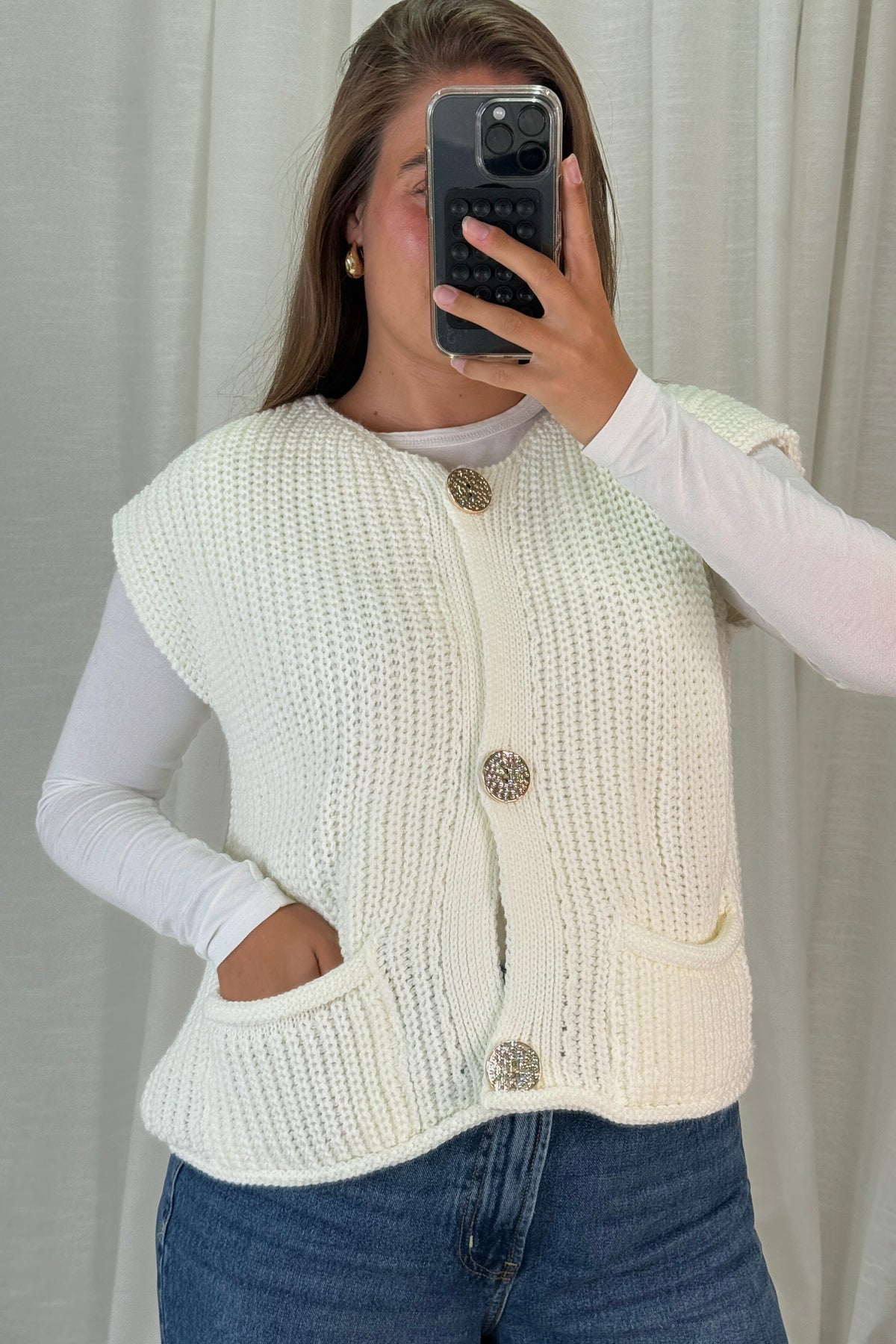 Biała kamizelka od A-bee, wykonana z akrylu, zapinana na guziki z przodu. Kamizelka ma okrągły dekolt, jest bez rękawów i ma regular fit.