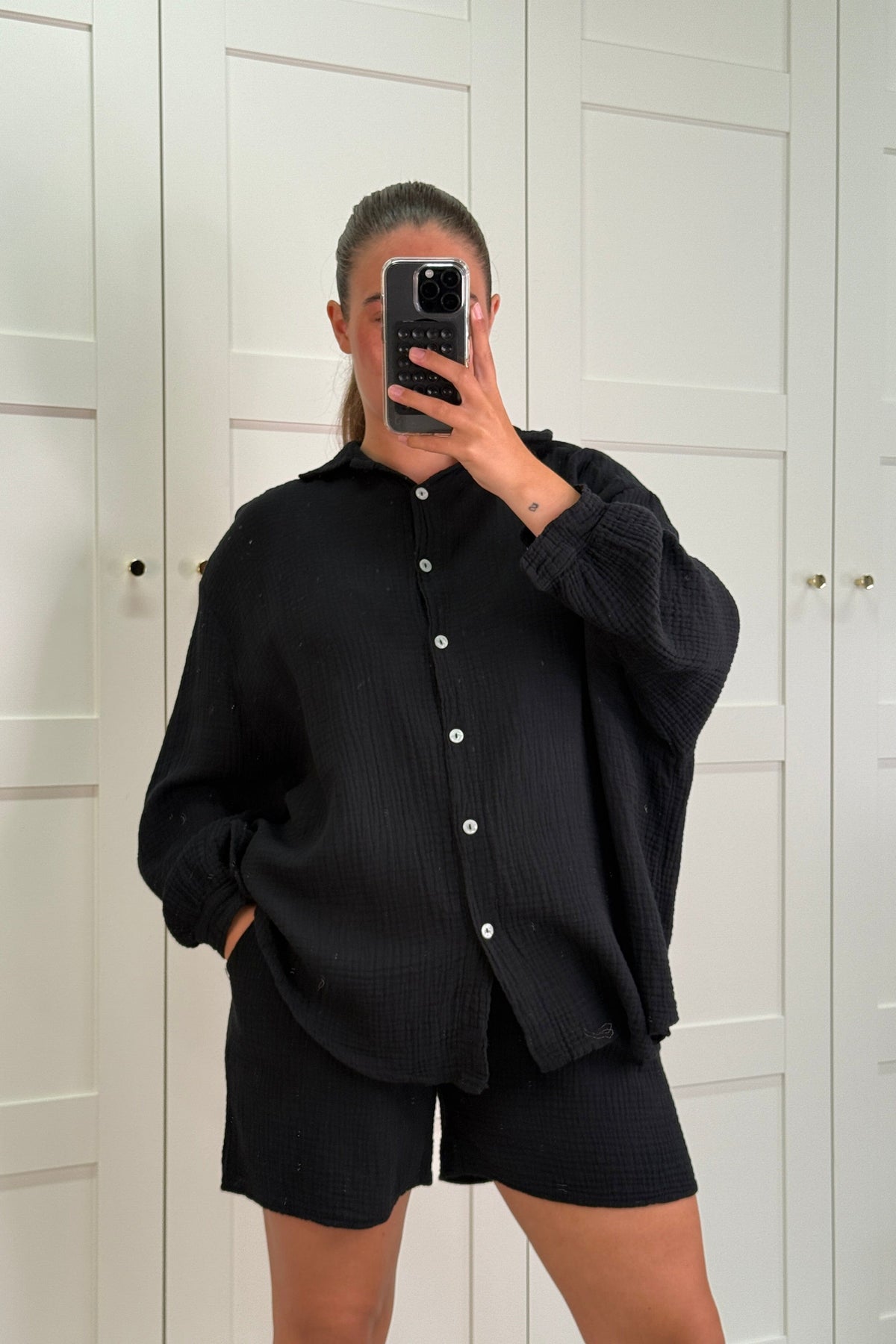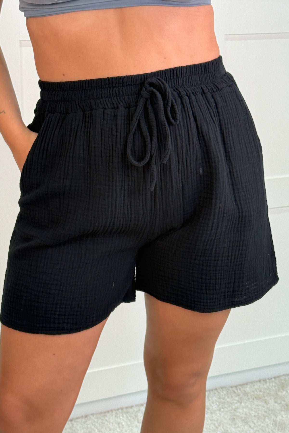 Czarne szorty z wysokim stanem od A-bee. Wykonane z bawełny z wiązaniem w talii. Szorty mają luźny krój i klasyczny jednolity styl.