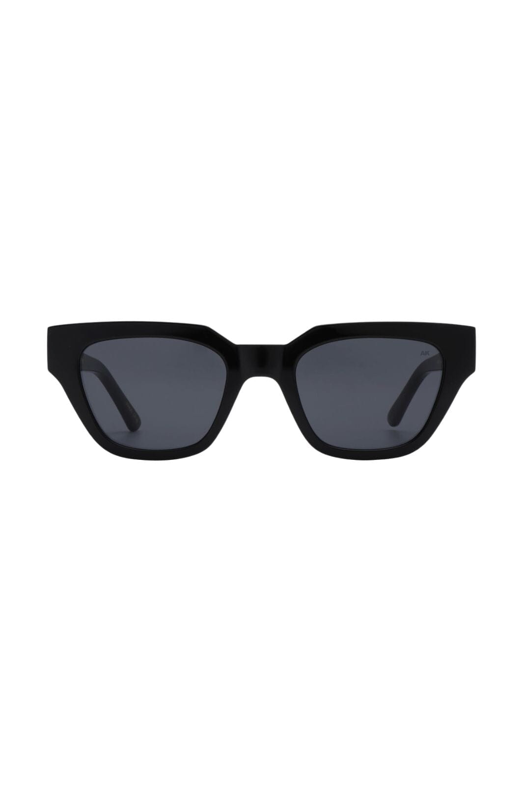 Czarne okulary przeciwsłoneczne od A. Kjærbede z ramką w kształcie kociego oka. Ramka wykonana jest z Tritan Renew z formowalnymi zausznikami i wysokiej jakości zawiasami optycznymi.