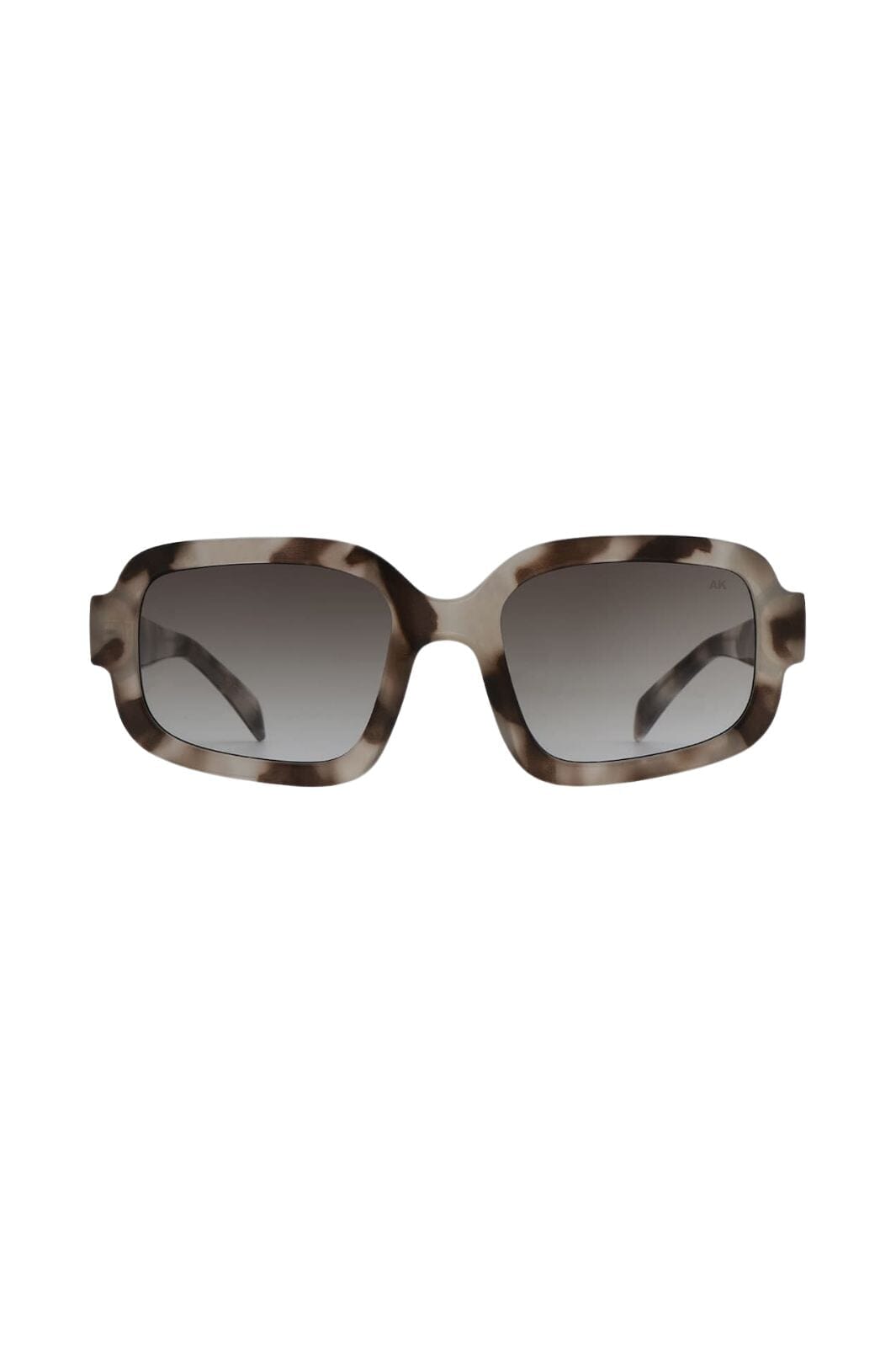 Prostokątne okulary przeciwsłoneczne od A. Kjærbede w ciepłym beżowo-brązowym odcieniu. Oprawa ma wzór w żółwie z przyciemnionymi szkłami, co nadaje retro charakter.