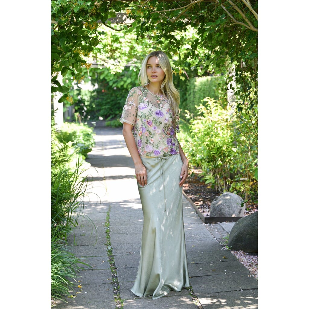 Bluzka marki A-View, wykonana z transparentnej siateczki w zielonych i fioletowych odcieniach. Bluzka ma haftowane kwiaty i sprawdzi się zarówno na formalne, jak i na bardziej uroczyste okazje.