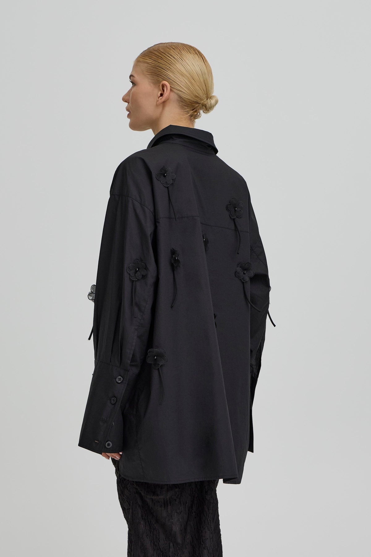Czarna koszula marki Ball, wykonana w 100% z bawełny. Koszula ma dekoracyjne przeszycia i wiązane detale, które nadają jej artystyczny charakter.