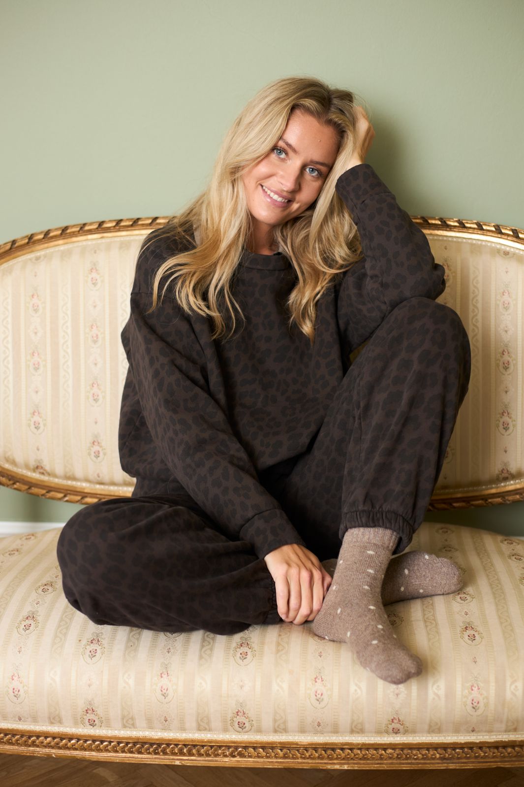 - Ciemny wzór w panterkę w brązie