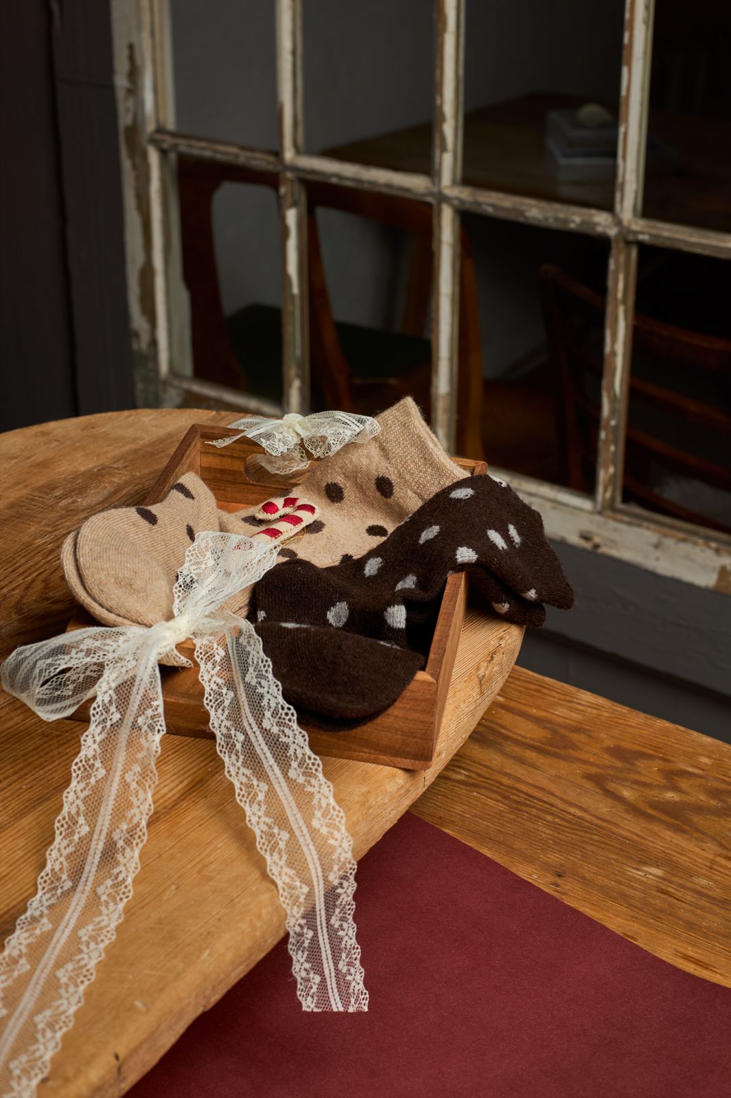 Skarpetka w kolorze camel od Black Colour z czarnymi kropkami. Skarpetka ma miękkie i wygodne dopasowanie, z połączeniem materiałów naturalnych i syntetycznych.
