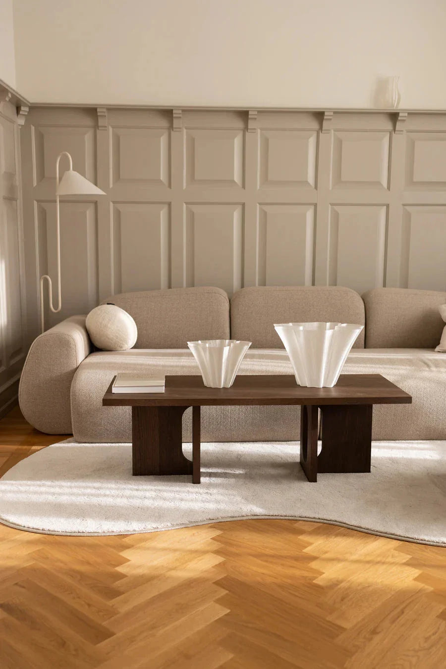 Przezroczysty wazon Bloom Objects o pofalowanym kształcie inspirowanym koralowcami. Wykonany w technologii druku 3D z biopochodnego PLA i produkowany lokalnie w Danii.
