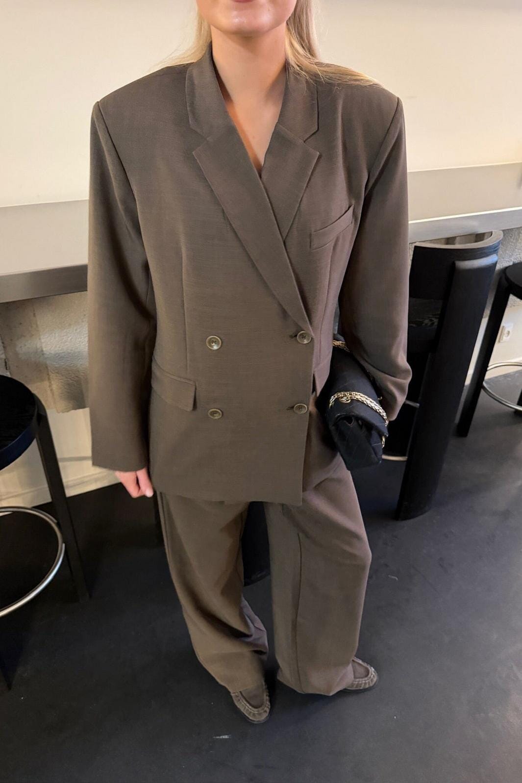 Dwurzędowa marynarka BYIC w ciemnobrązowym kolorze. Marynarka ma lekko oversize krój oraz klasyczny dwurzędowy fason z kołnierzykiem koszulowym.