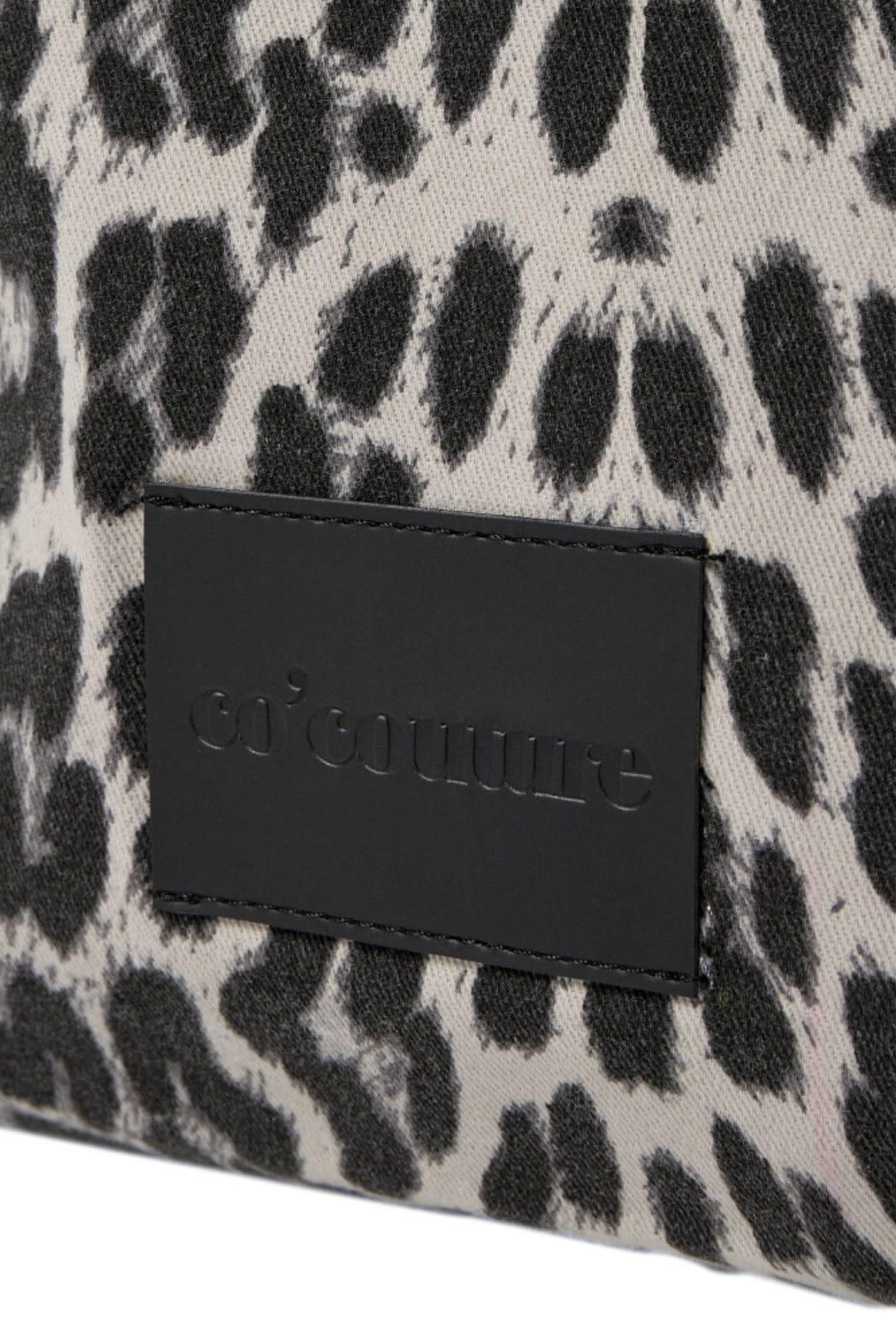 Maxi shopper od Co´Couture w szarym wzorze lamparta. Torba ma przestronną wielkość i błyszczące detale w tkaninie. Otwarty model jest łatwy w użyciu.