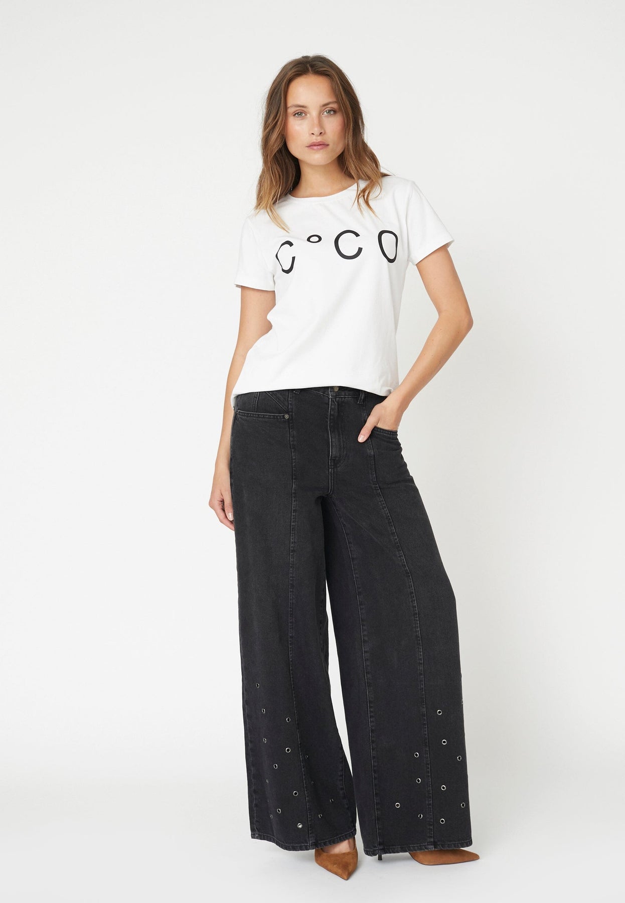 Biała koszulka T-shirt od Co´Couture z czarnym nadrukiem z przodu. T-shirt wykonany jest w 95% z bawełny i w 5% z elastanu.