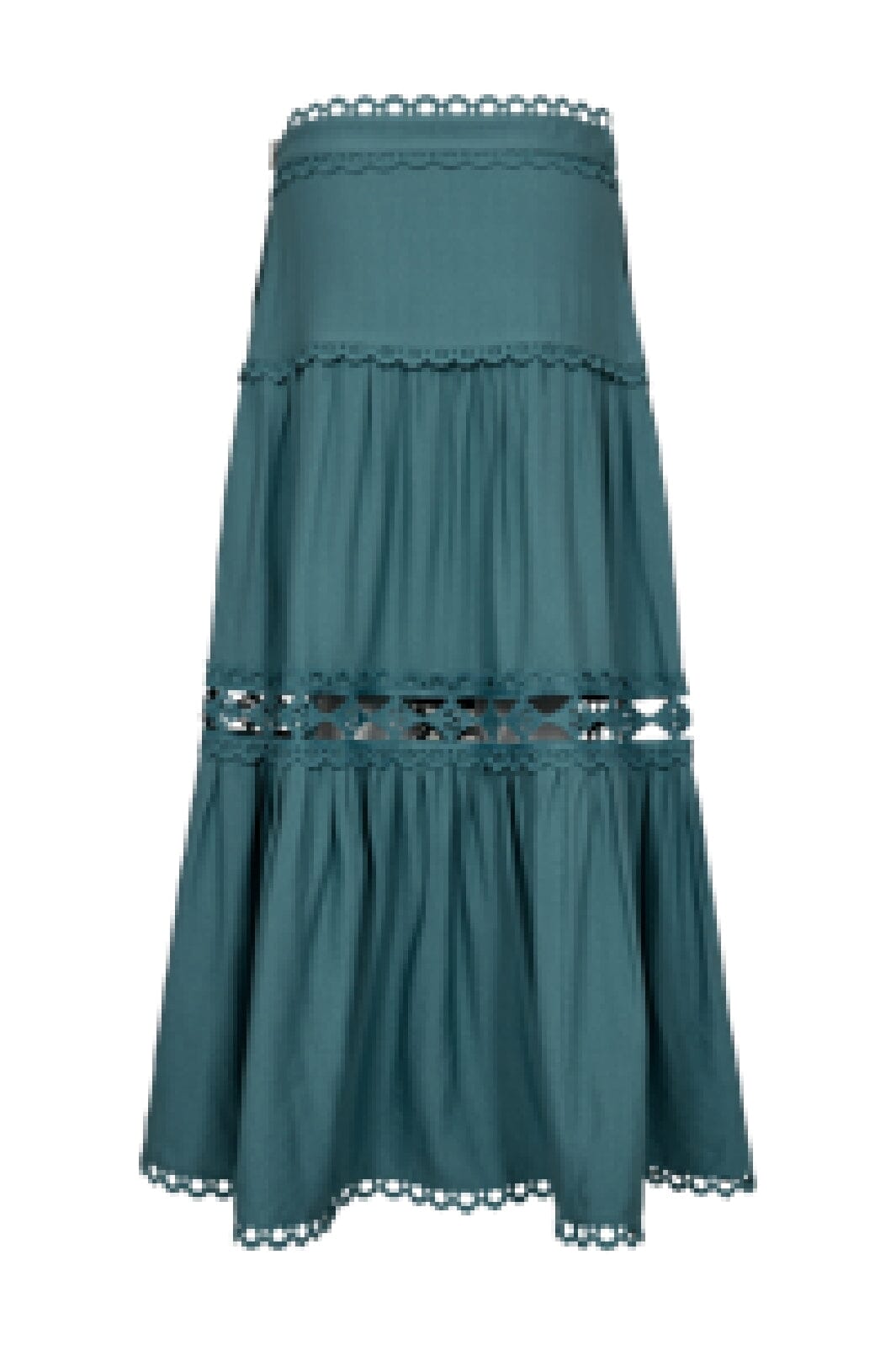 Spódnica od Copenhagen Muse w arktycznym odcieniu. Ma warstwowy design z koronkowymi krawędziami i falbanami, które tworzą kobiecy wyraz.
