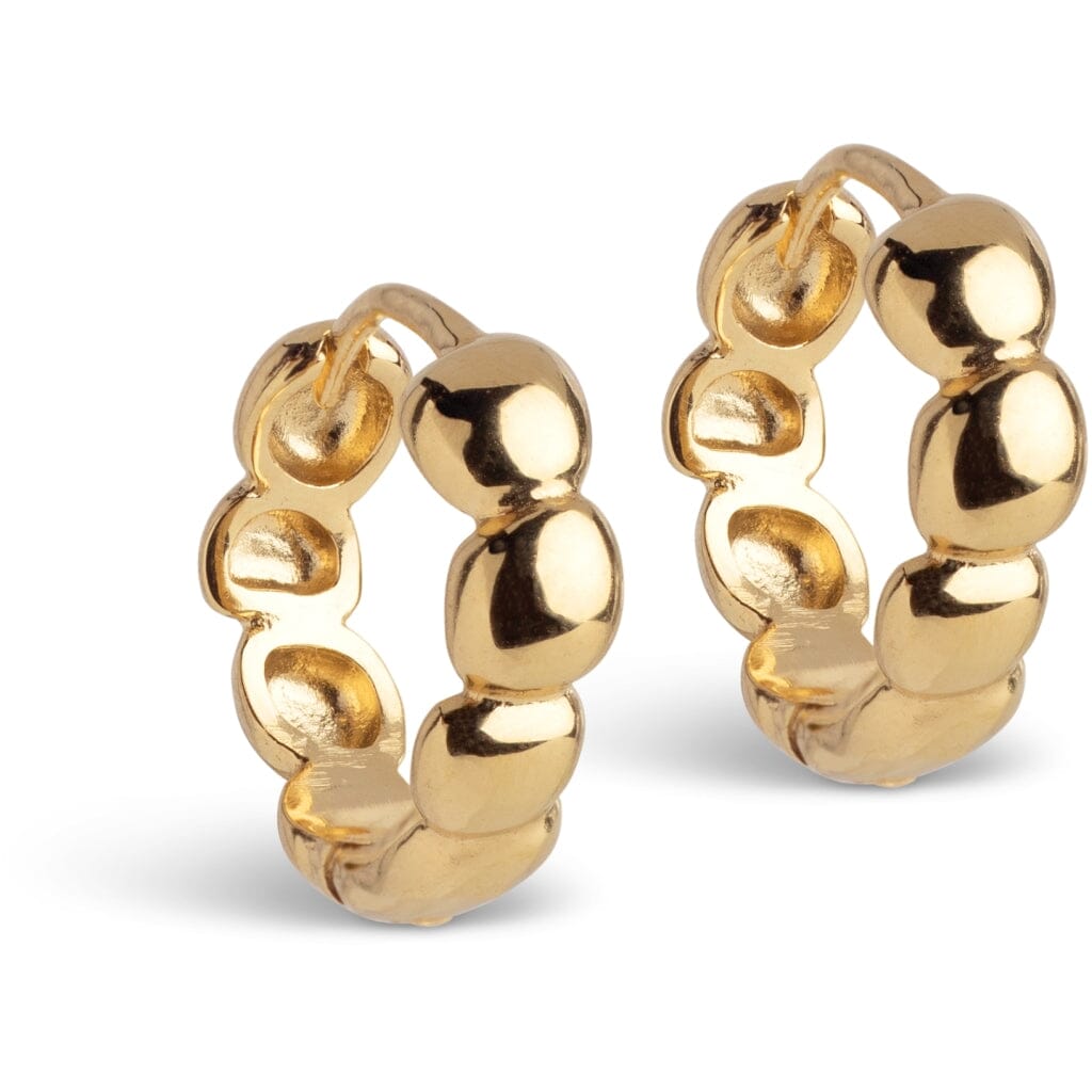 Kolczyki koła od Enamel Copenhagen, wykonane z pozłacanego 18-karatowym złotem, recyklingowanego srebra próby 925. Projekt wyróżnia się miękkimi, zaokrąglonymi segmentami z polerowaną, złotą powierzchnią.