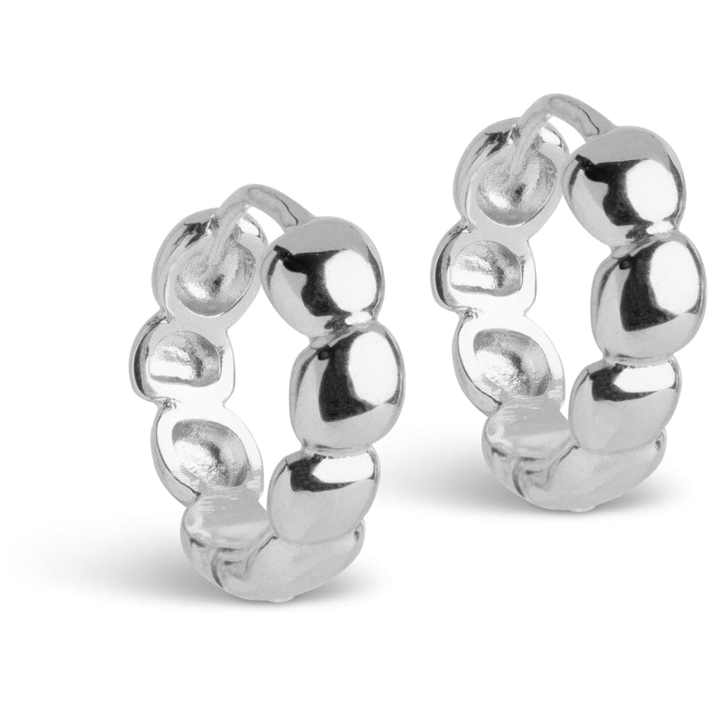 Srebrzyste kolczyki koła od Enamel Copenhagen, wykonane z recyklingowanego srebra próby sterling. Kolczyki mają gładkie, zaokrąglone segmenty z polerowaną powierzchnią.