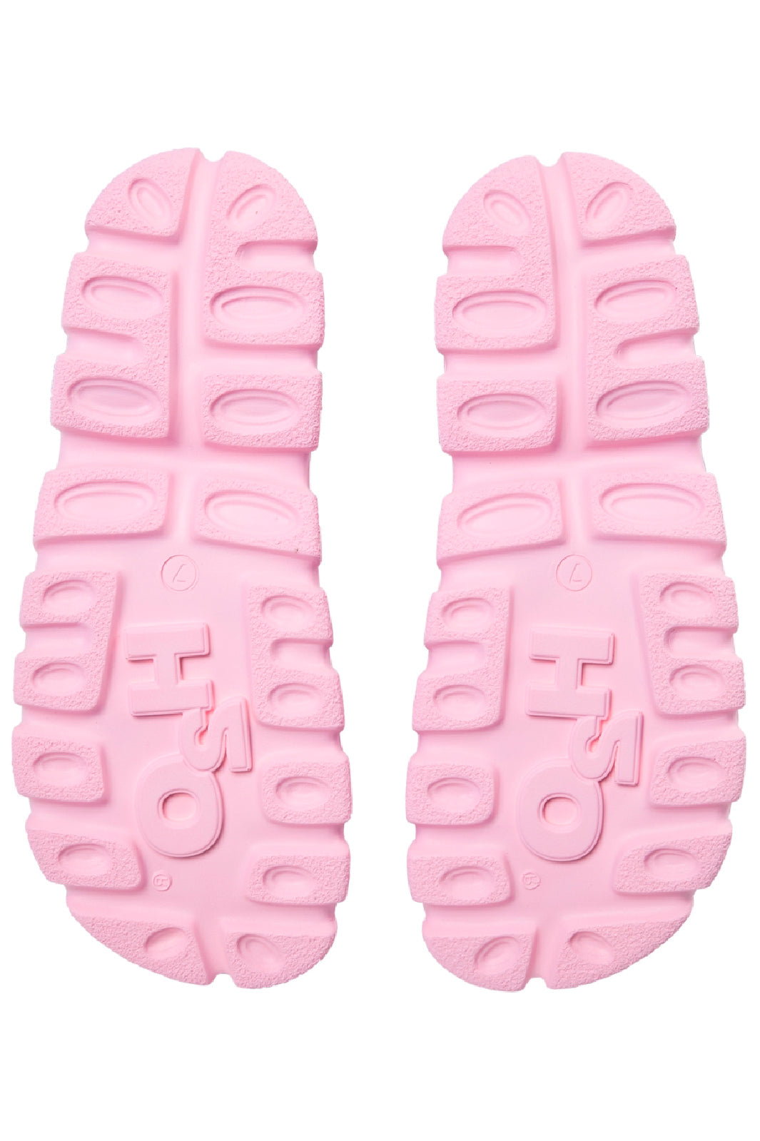 Jasnoróżowe klapki kąpielowe od H2O z logo H2O na górze. Klapki zostały zaprojektowane do użytku przy basenie i na plaży, gdzie dobrze sprawdzają się w wilgotnym otoczeniu.