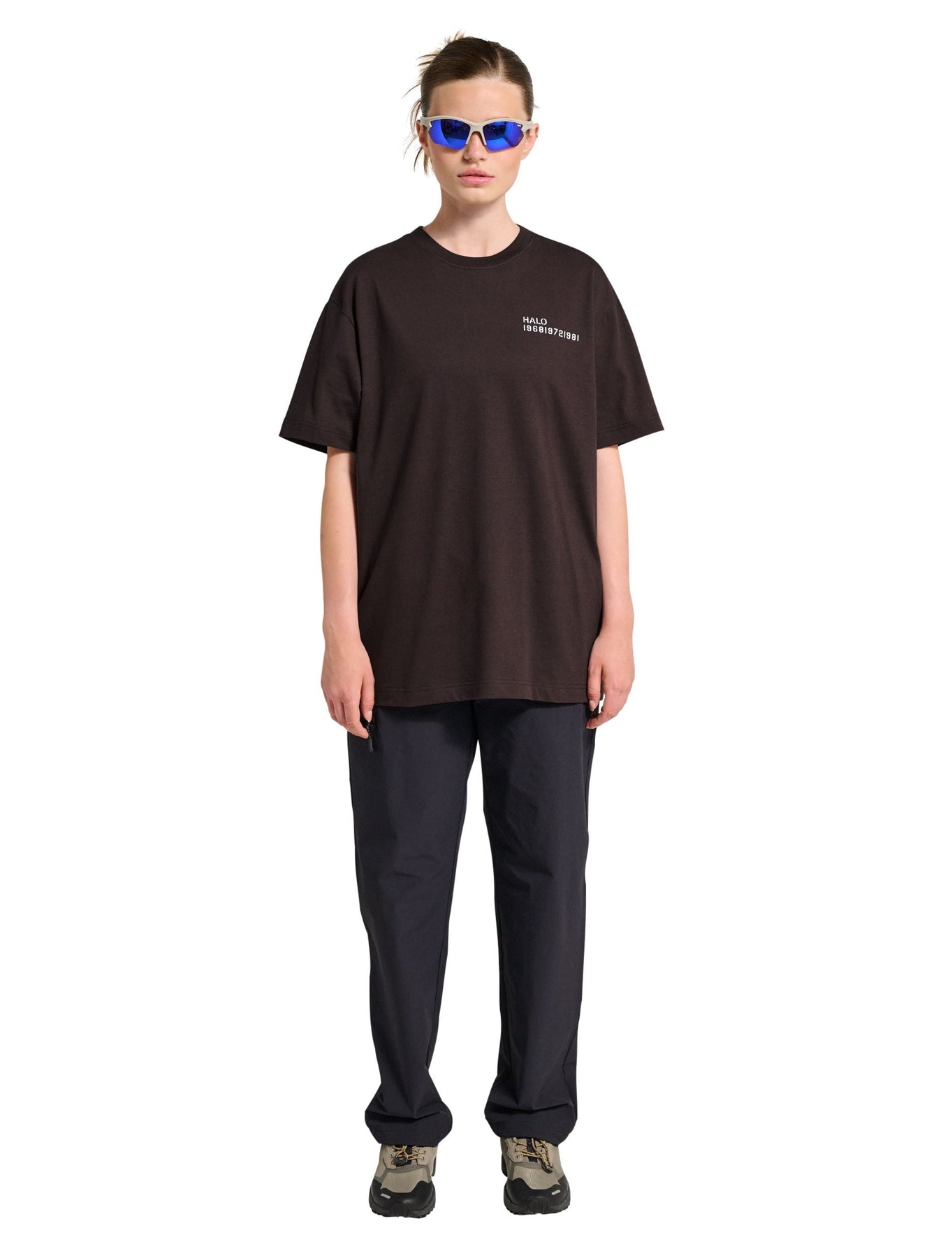 Ciemnobrązowy t-shirt HALO wykonany w 100% z bawełny organicznej. T-shirt ma krótkie rękawy i luźny krój z napisem F.U.T. na plecach.