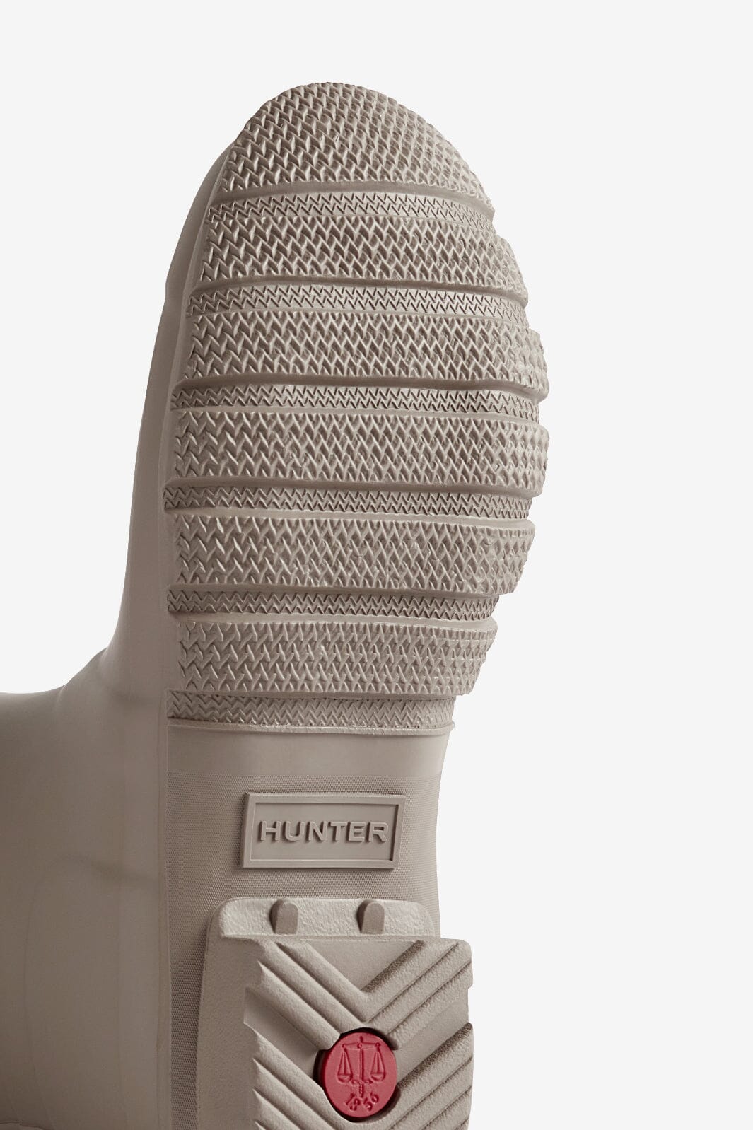 Krótkie kalosze marki Hunter w kolorze Kettle, w neutralnym odcieniu brązowo-beżowym. Buty wykonane są w 100% z gumy i mają obcas typu słupek.