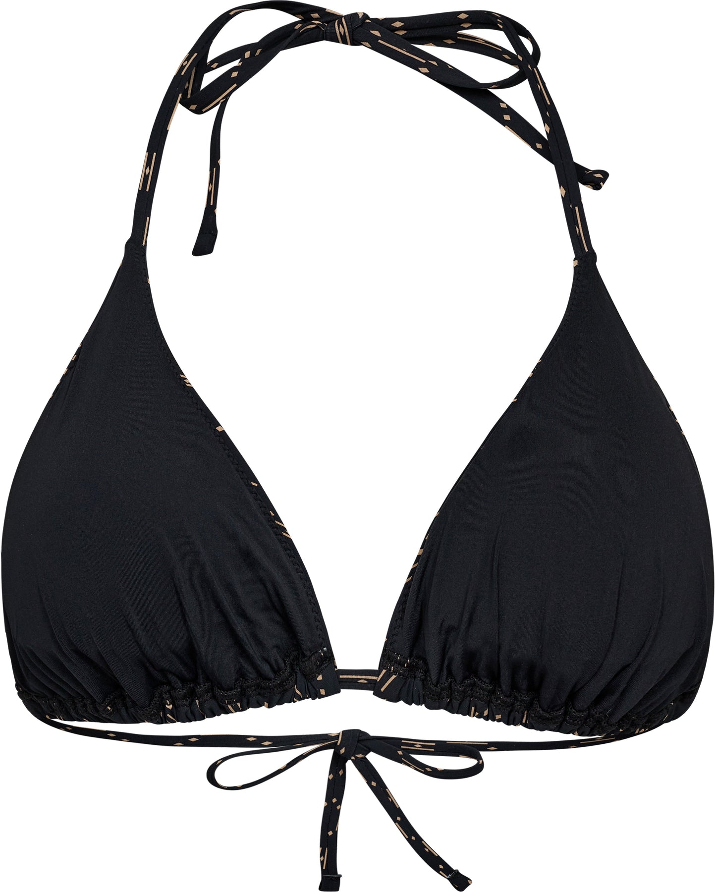 Czarny bikini trójkątny od Hype The Detail z nadrukowanym wzorem w beżowych odcieniach. Bikini ma wiązania na szyi i na plecach.