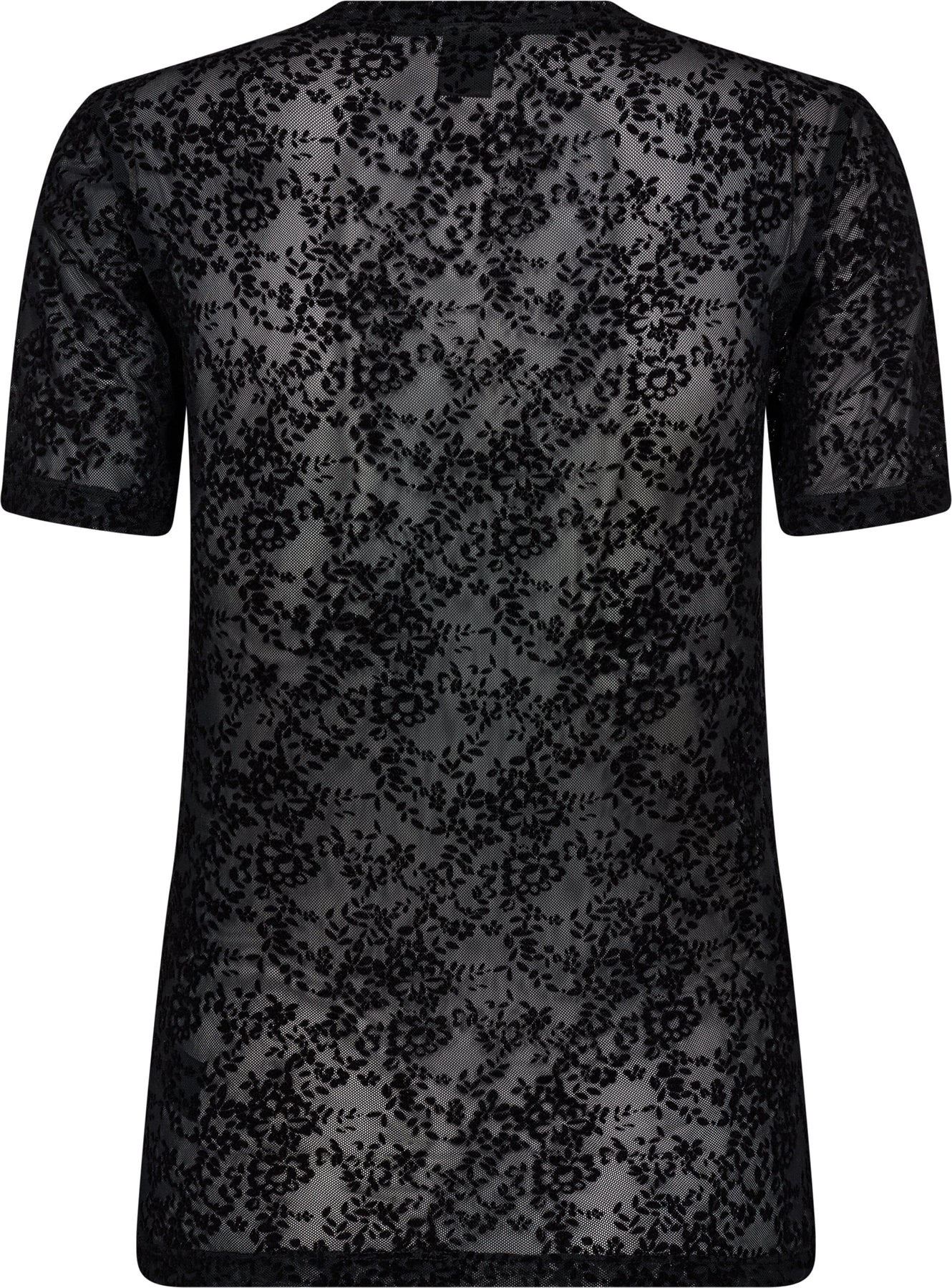 Czarny koronkowy t-shirt od Hype The Detail z transparentnym kwiatowym wzorem. Ma krótkie rękawy i dopasowany krój.