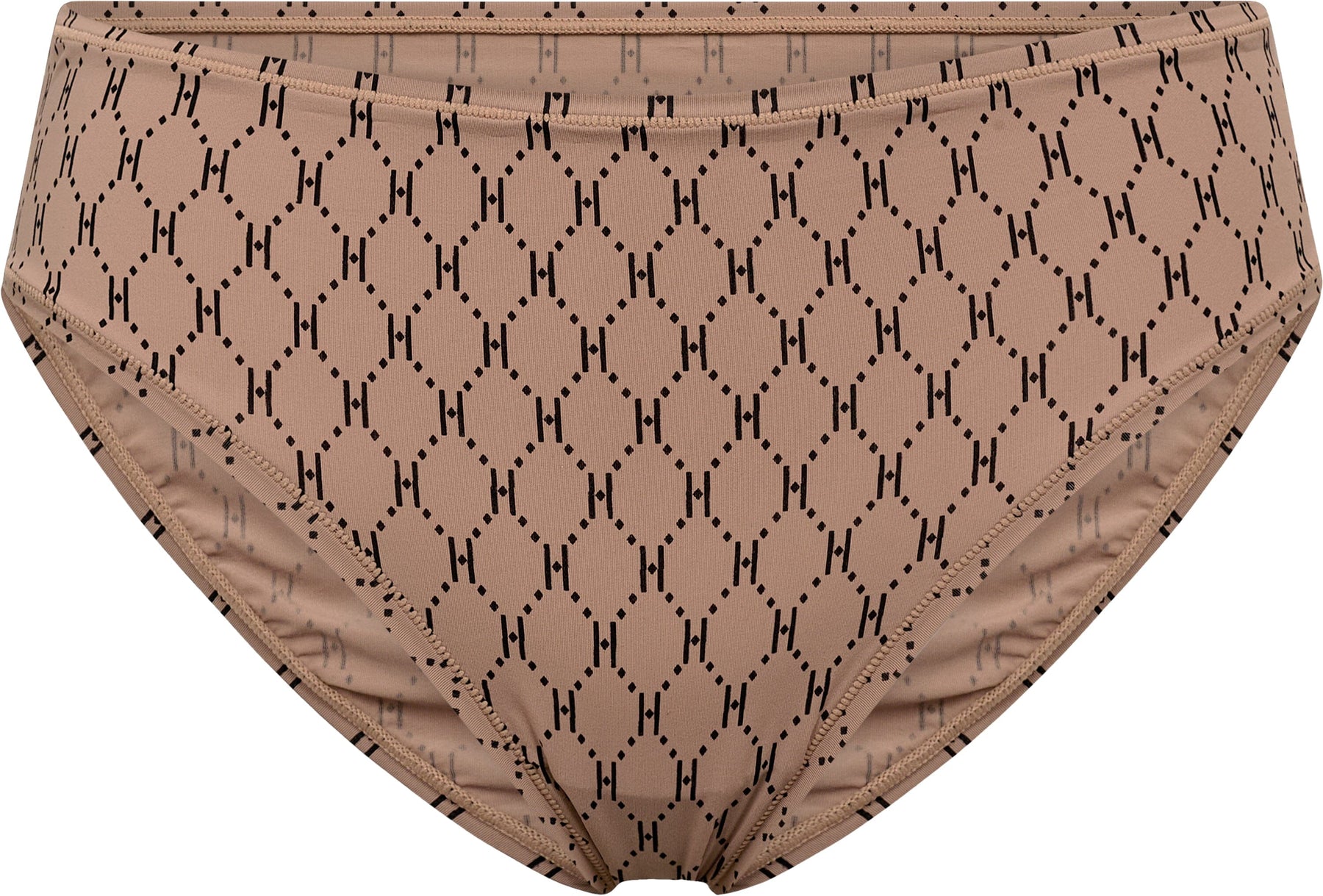 Brązowe figi typu tai od Hype The Detail w 3-paku. Majtki mają powtarzający się czarny wzór z logo na brązowym tle.
