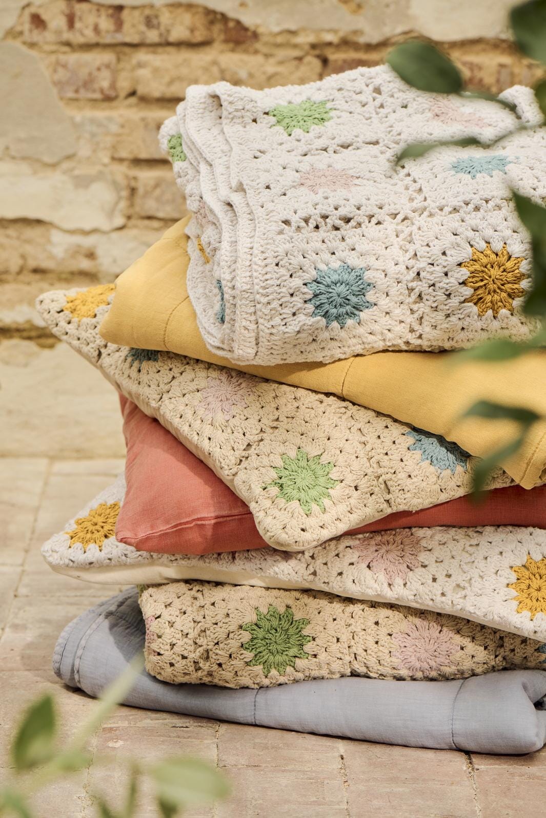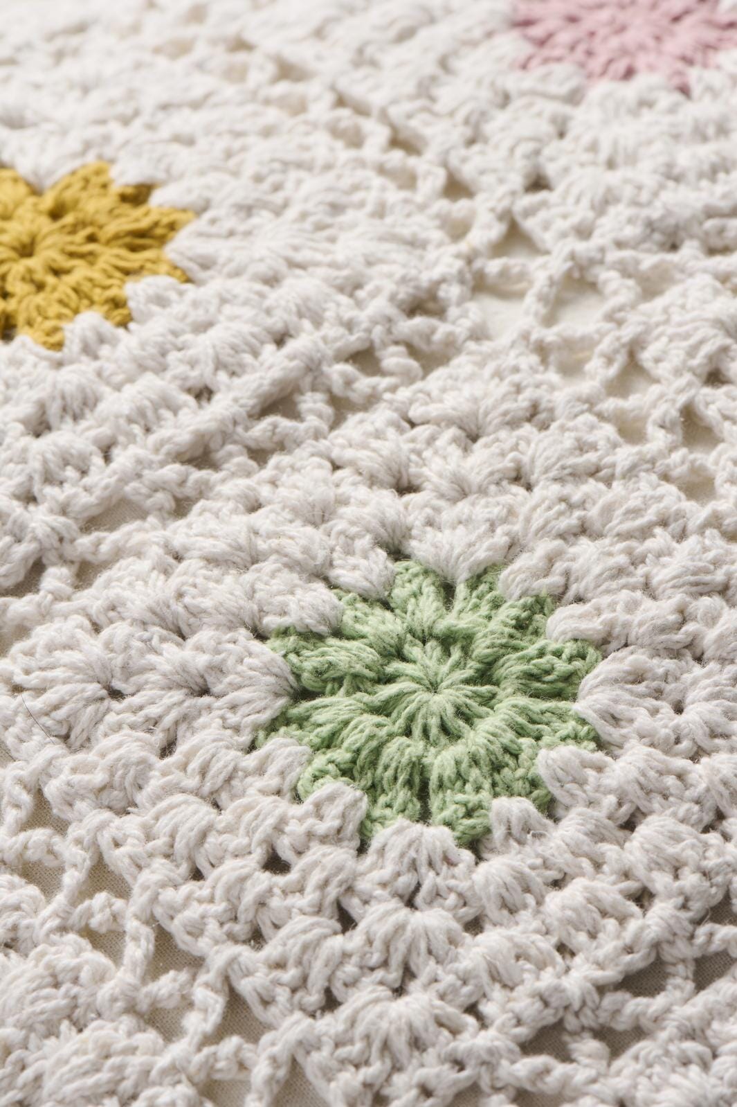 Ib Laursen Pudebetræk hæklet creme m/multifarvede blomster, bagside i cremefarvet lærred Kolor: 100% bomuld