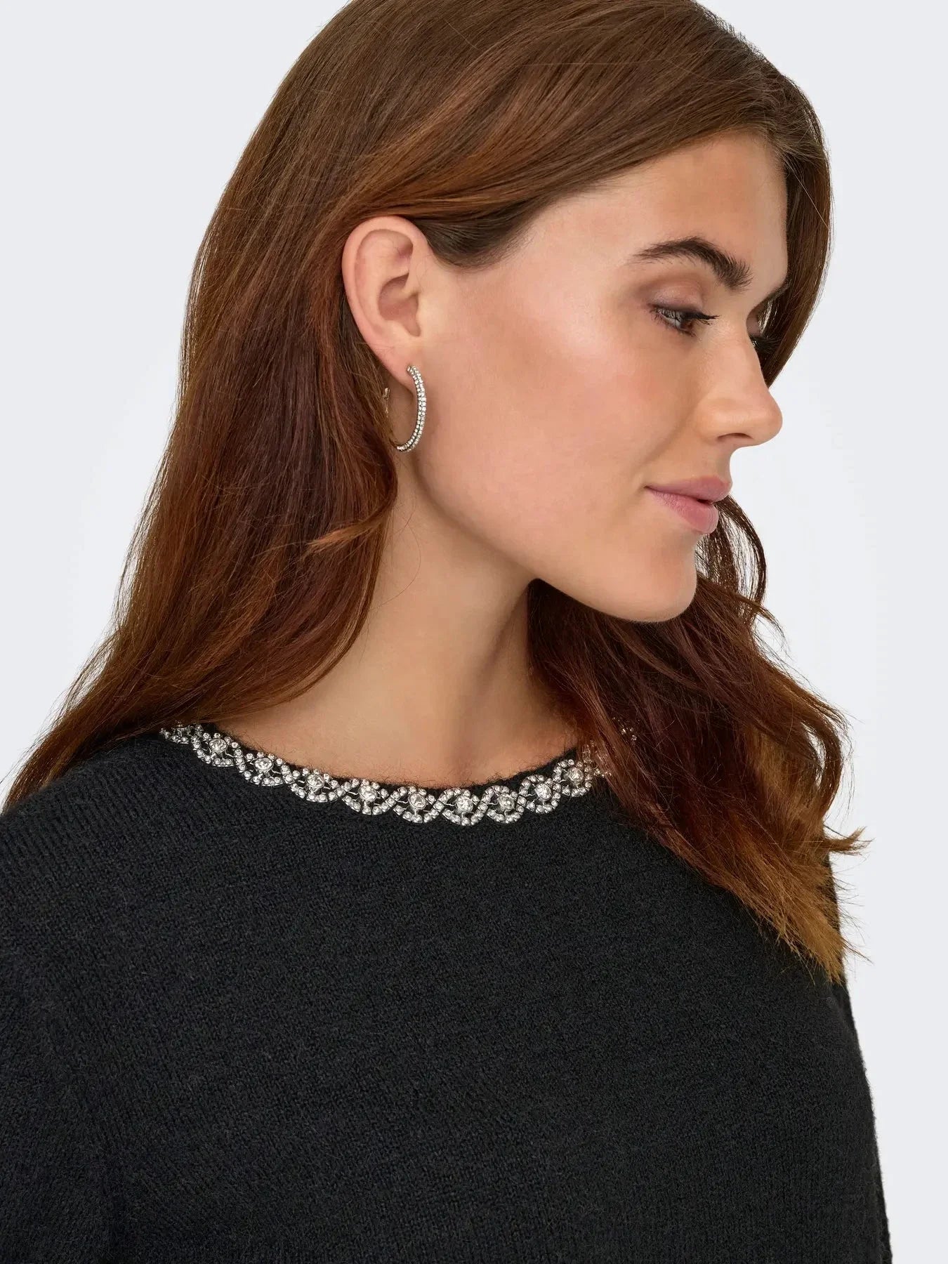 JDY Jdyalva Life L/S Embellish Pullover Knt Kolor: 4907581 Black Silver Embellishment