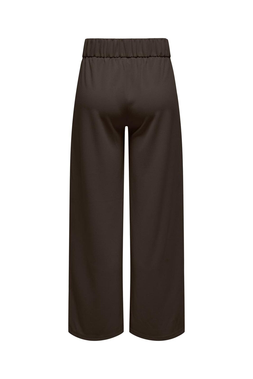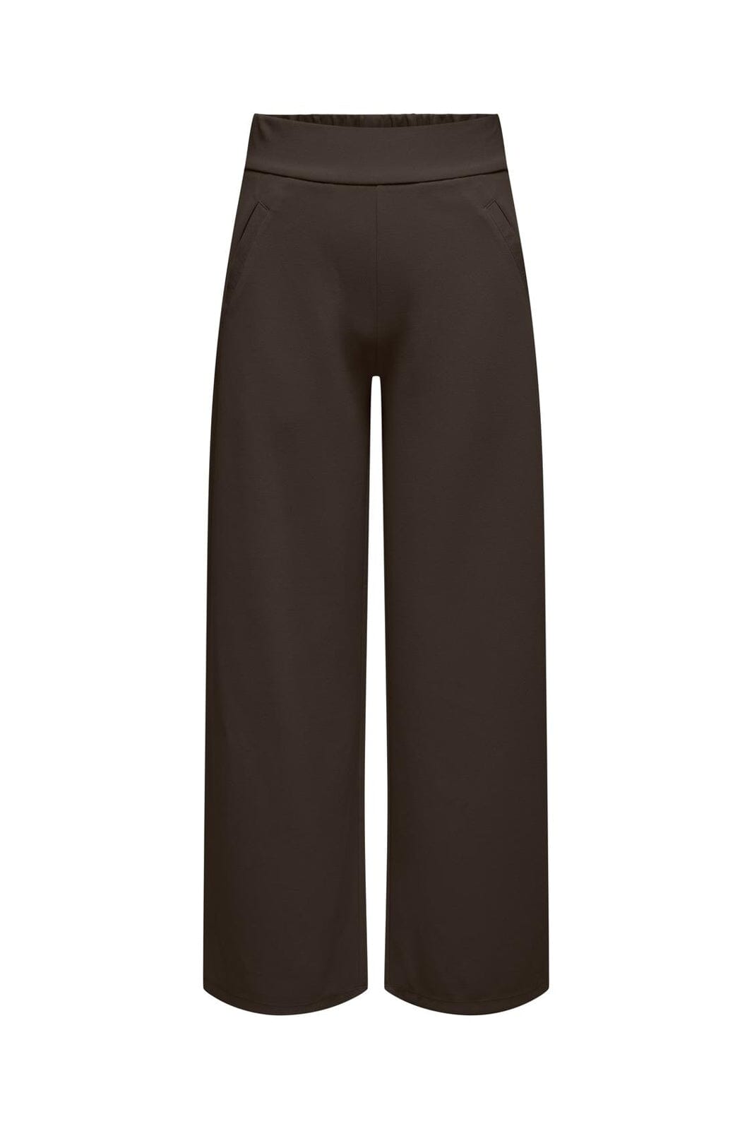 Brązowe spodnie od JDY z wysokim stanem i luźnym krojem. Spodnie sięgają do połowy łydki i mają praktyczne boczne kieszenie oraz elastyczny pas.