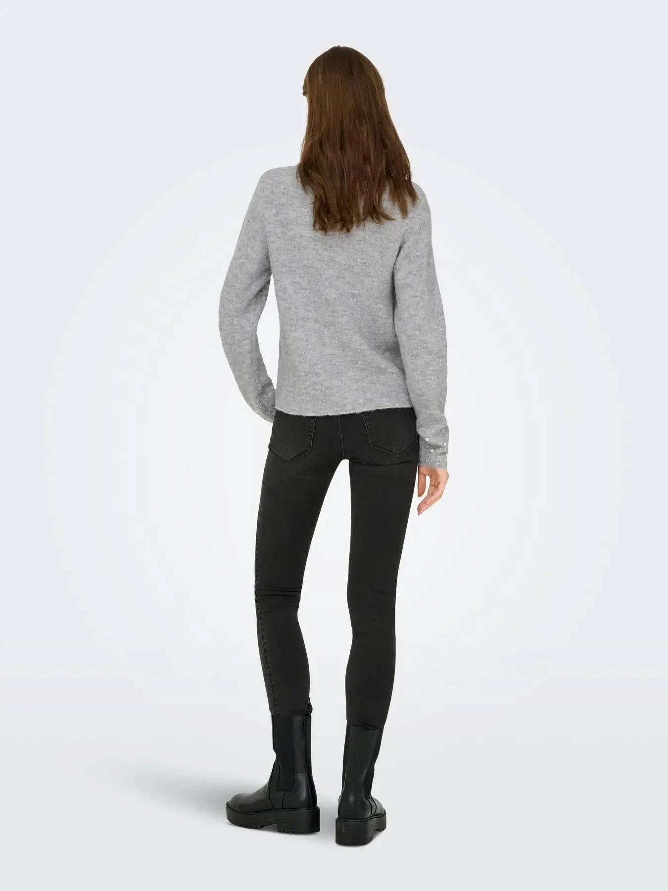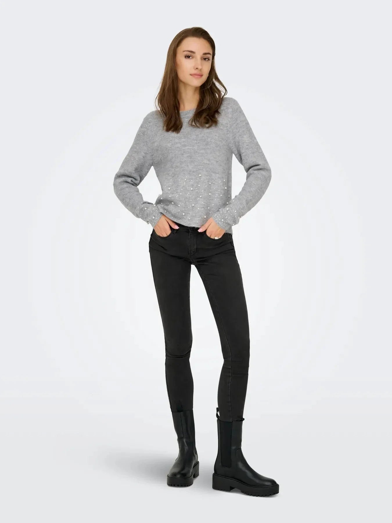 JDY Jdypearl L/S O-Neck Pearl Pullover Knt Kolor: 4815065 Light Grey Melange White Pearls
