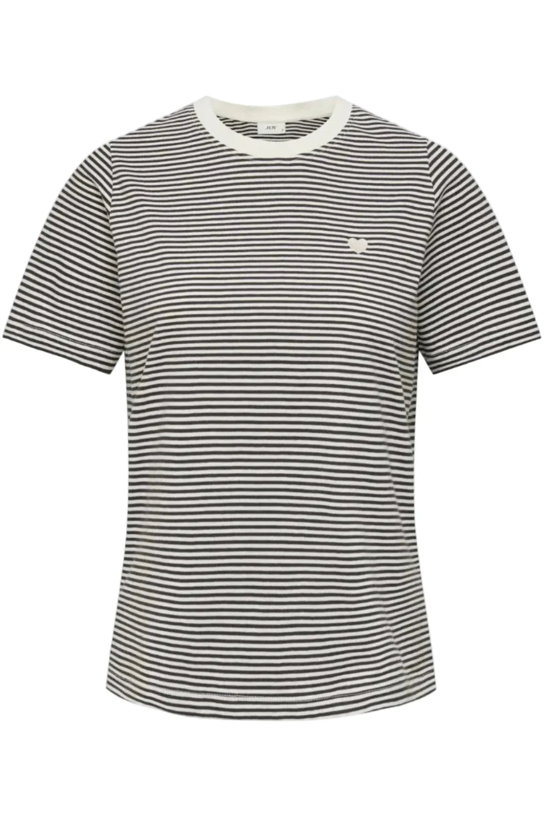 JDY Jdypisa S/S Print Top Kolor: 4984887 Cloud Dancer Chicory Coffee Stripes And Pink Dogwood Heart