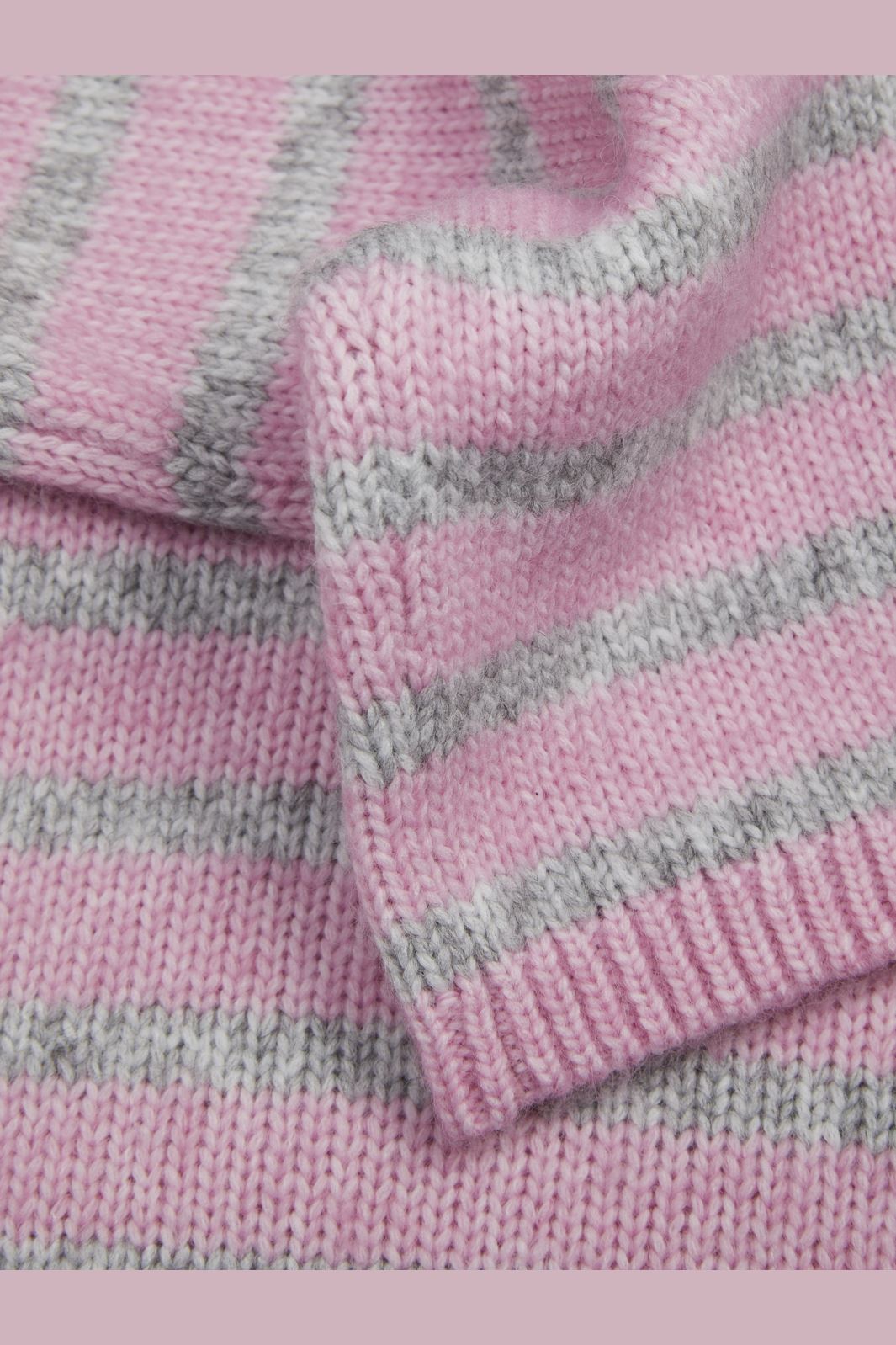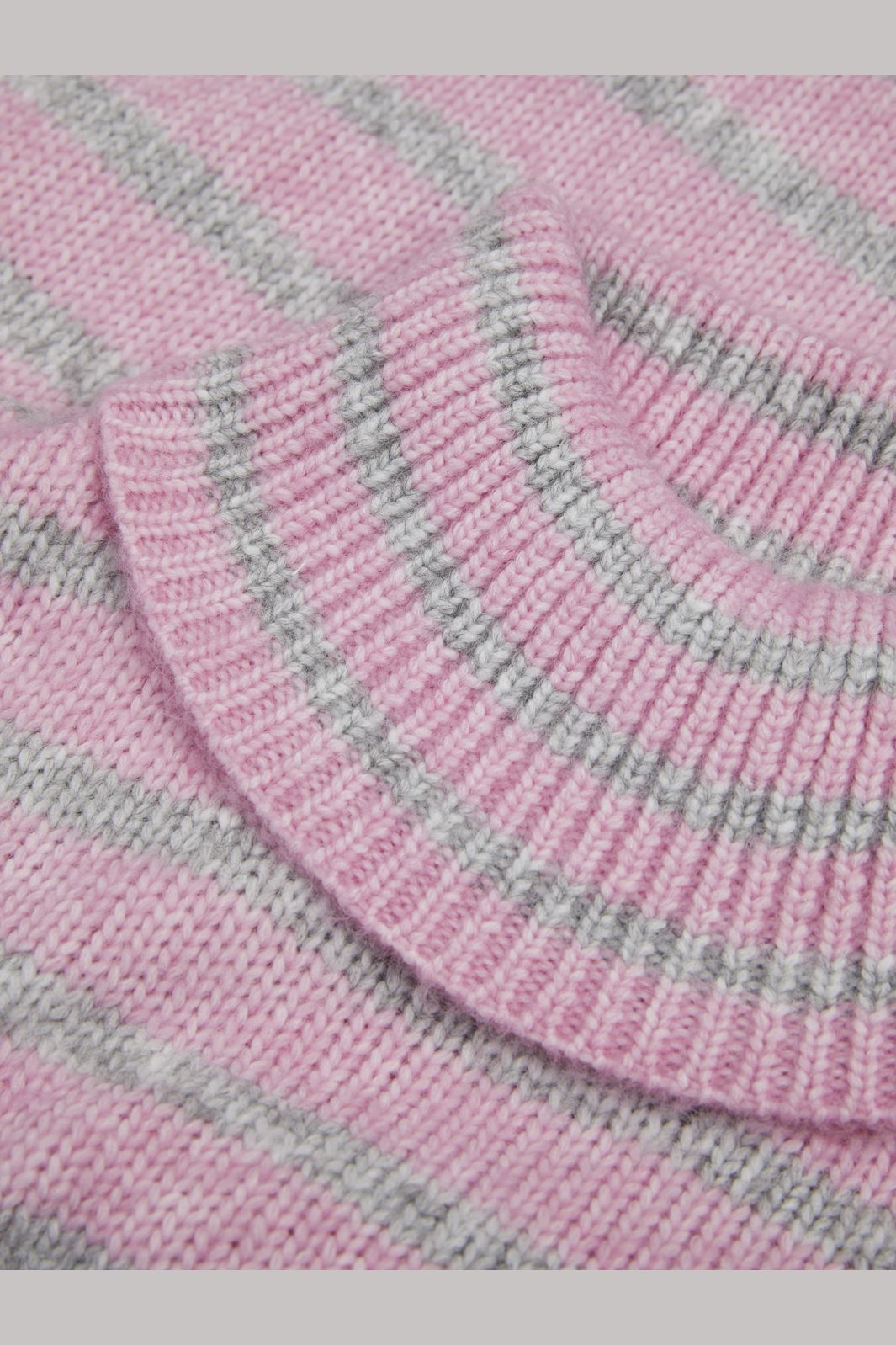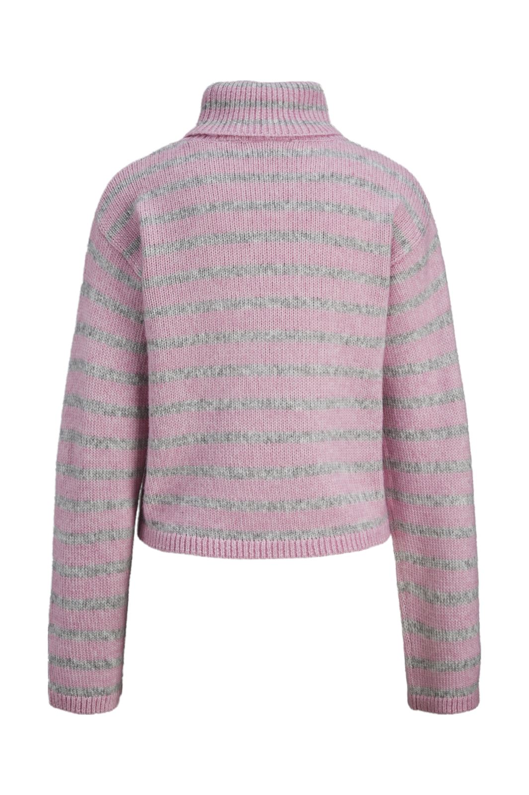 Striped knit sweater od Jjxx z wysokim golfem. Różowy sweter ma szare paski i długie rękawy w regular fit.