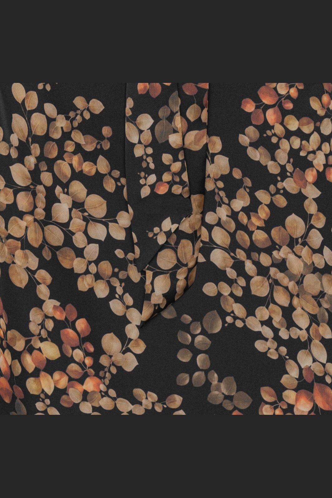 Długa spódnica od Karmamia z kwiatowym wzorem w brązowych i pomarańczowych odcieniach na czarnym tle. Ma falbanę na dole i sznurek w talii.