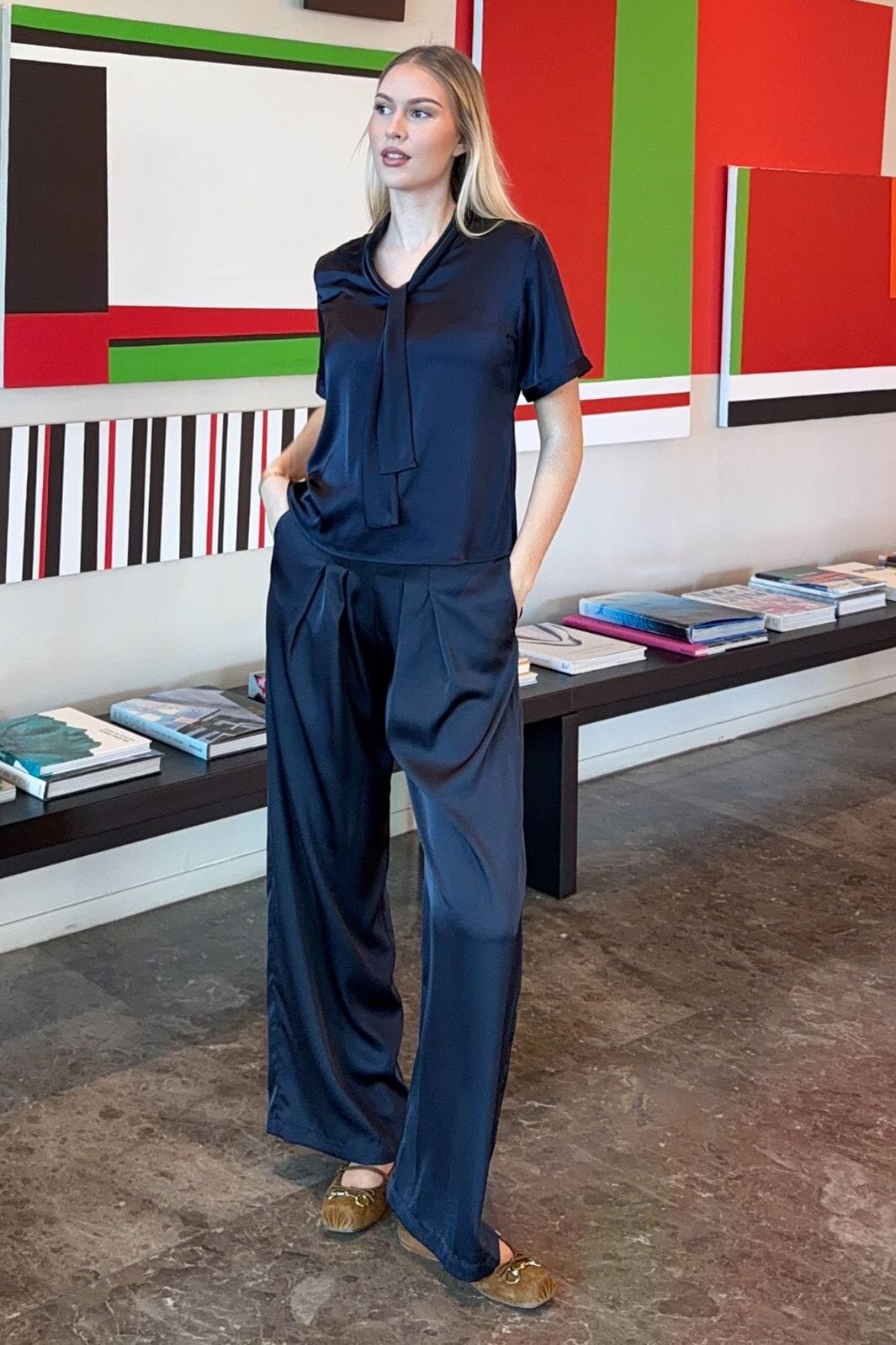 • Luźny krój z szerokimi nogawkami