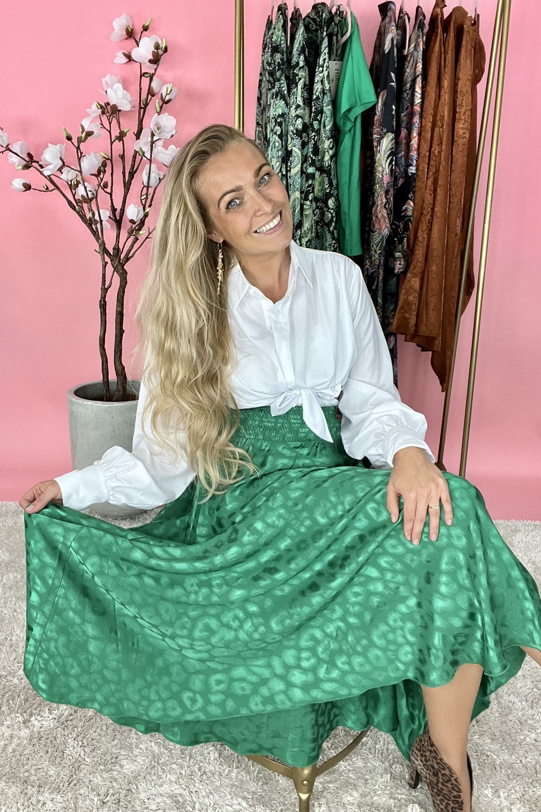 Biała koszula od Karmamia z skręconym przodem i detalami wstążkowymi. Koszula ma długie rękawy z mankietami i klasyczny kołnierzyk.