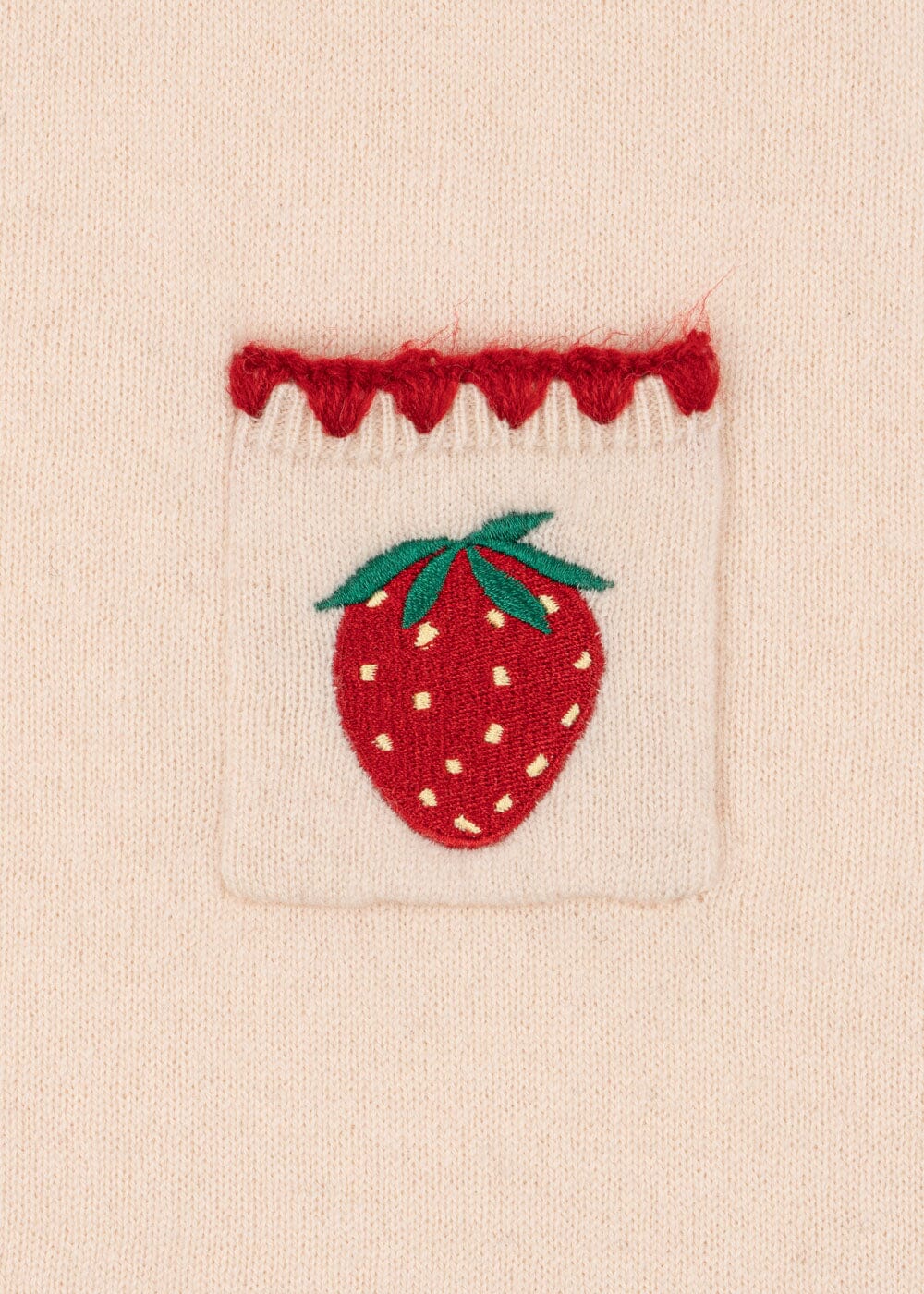 Sukienka od Konges Sløjd w jasnym kremowym odcieniu. Sukienka wykonana jest w 100% z wełny i ma czerwone dekoracyjne detale.