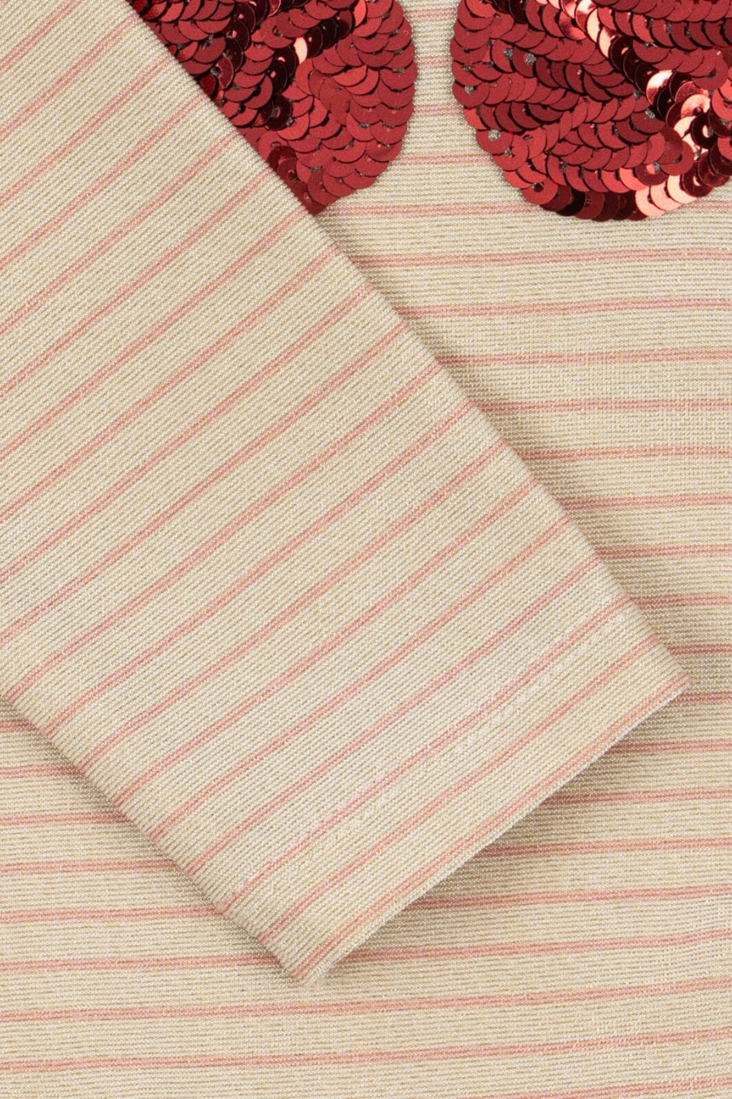 Jednoczęściowy strój kąpielowy z długim rękawem od Konges Sløjd we wzór w paski w odcieniach różu i beżu. Długie rękawy zapewniają ochronę przed słońcem, a cekiny w kształcie wiśni z przodu sprawiają, że noszenie go jest jeszcze przyjemniejsze.