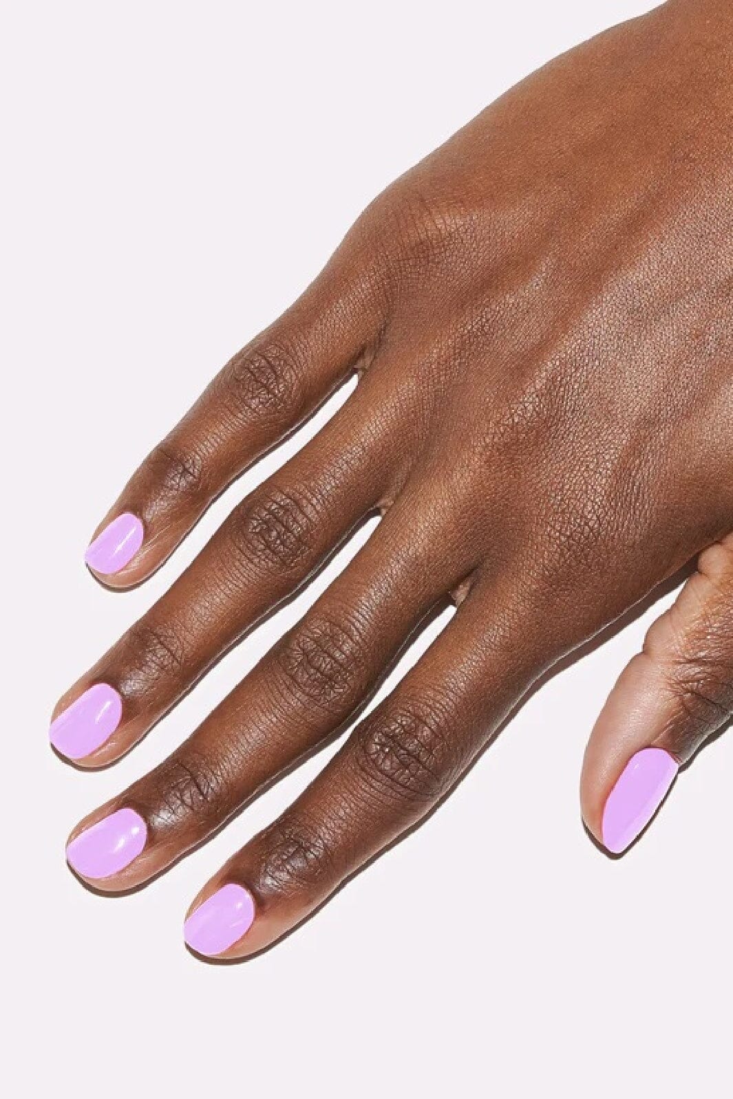Kolor lawendowy nadaje paznokciom dyskretny i kobiecy wygląd. Lakier łatwo się nakłada i dobrze kryje przy dwóch warstwach.
