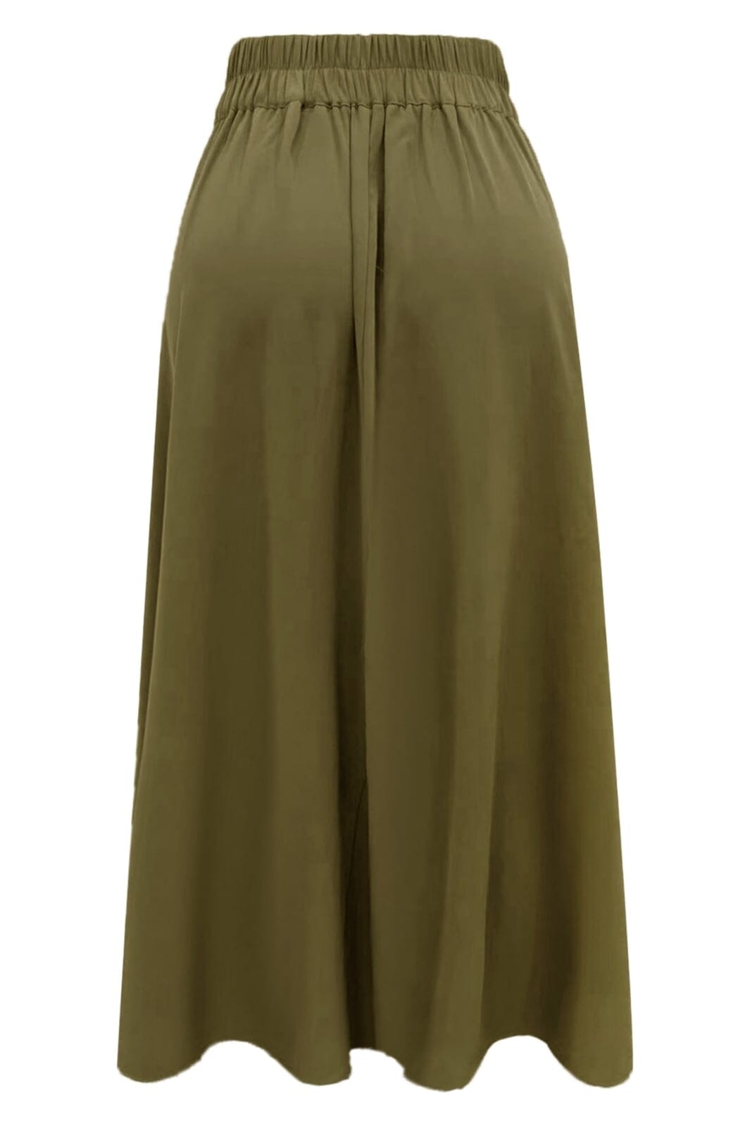 Długa spódnica od Liberte w kolorze oliwkowym. Spódnica ma płynny kształt i standardową wysokość w talii z elastycznym pasem.