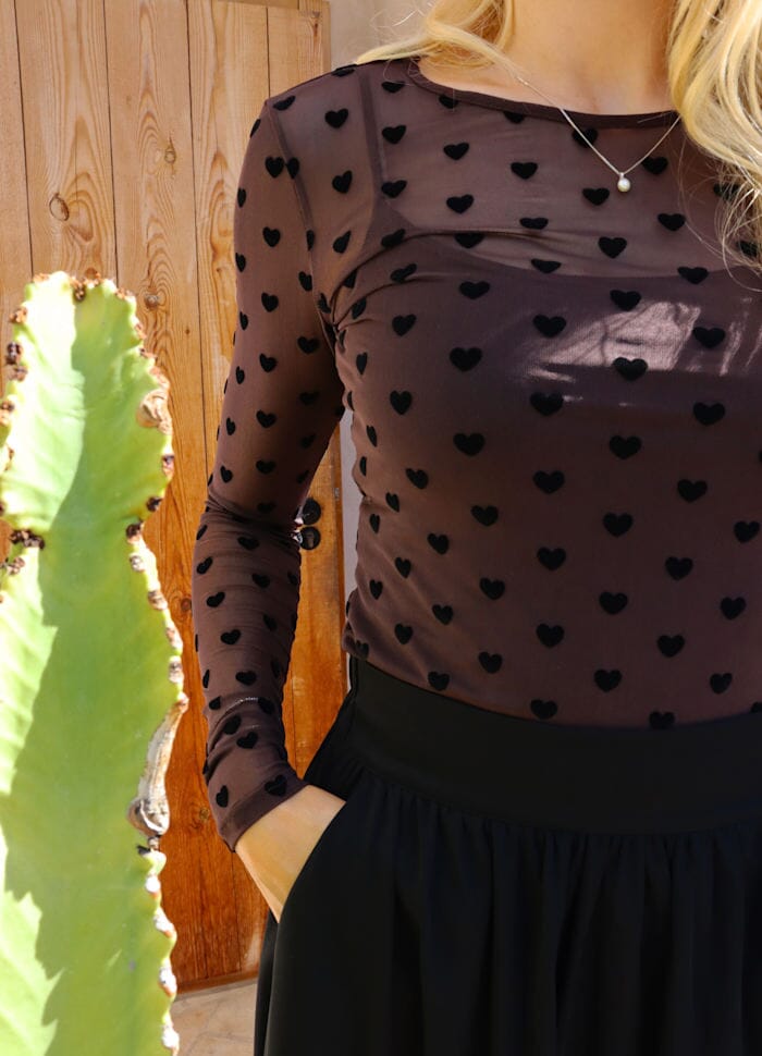 Liberte Mesh-Ls-Tshirt 22065 Kolor: Dark Brown Black Flock Heart