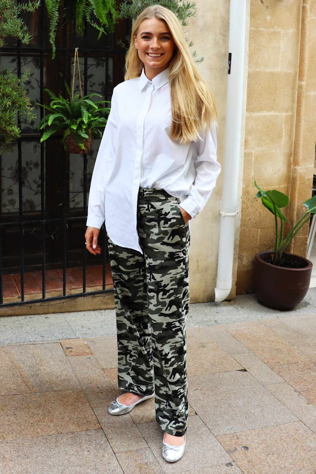 Biała koszula od Liberte z diamentowym wzorem i małymi detalami z pereł. Koszula ma klasyczny kołnierzyk i guziki na całej długości z przodu.