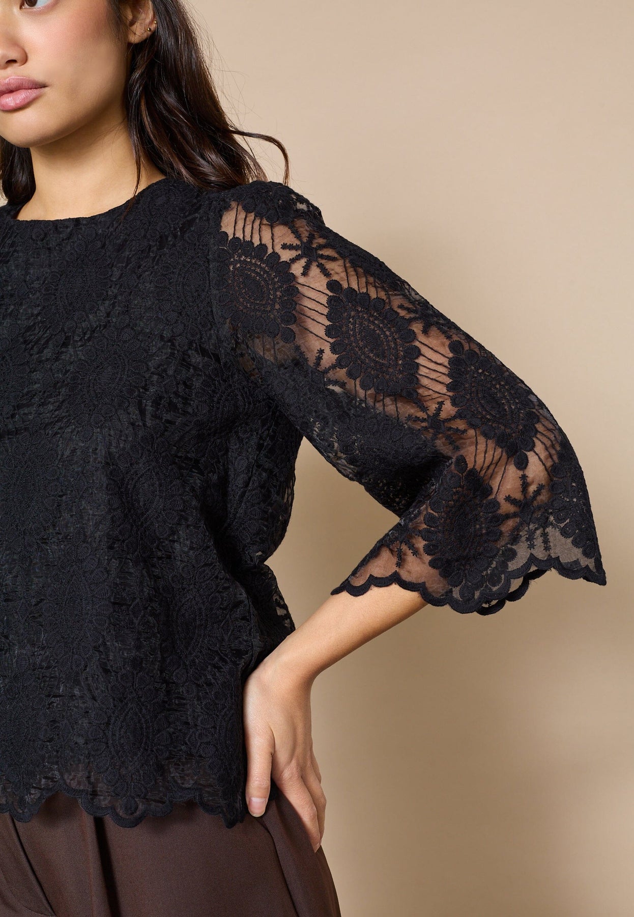 - Rękawy 3/4 z koronkowym wzorem