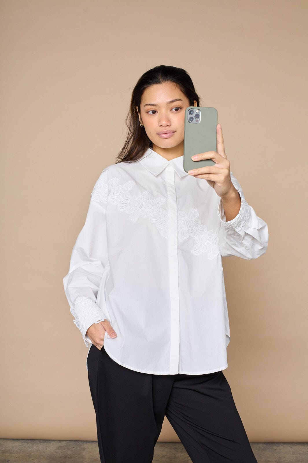 Biała bluzka od Love & Divine, wykonana w 100% z bawełny. Biały kolor sprawia, że bluzkę łatwo łączyć z innymi kolorami.