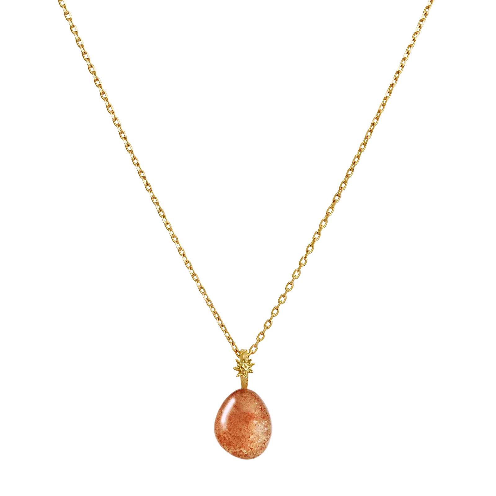 Zawieszka od Maanesten z pomarańczowym kamieniem w kształcie kropli i detalem w kształcie gwiazdy na górze. Wykonana z recyklingowanego srebra próby 925, pozłacanego złotem.