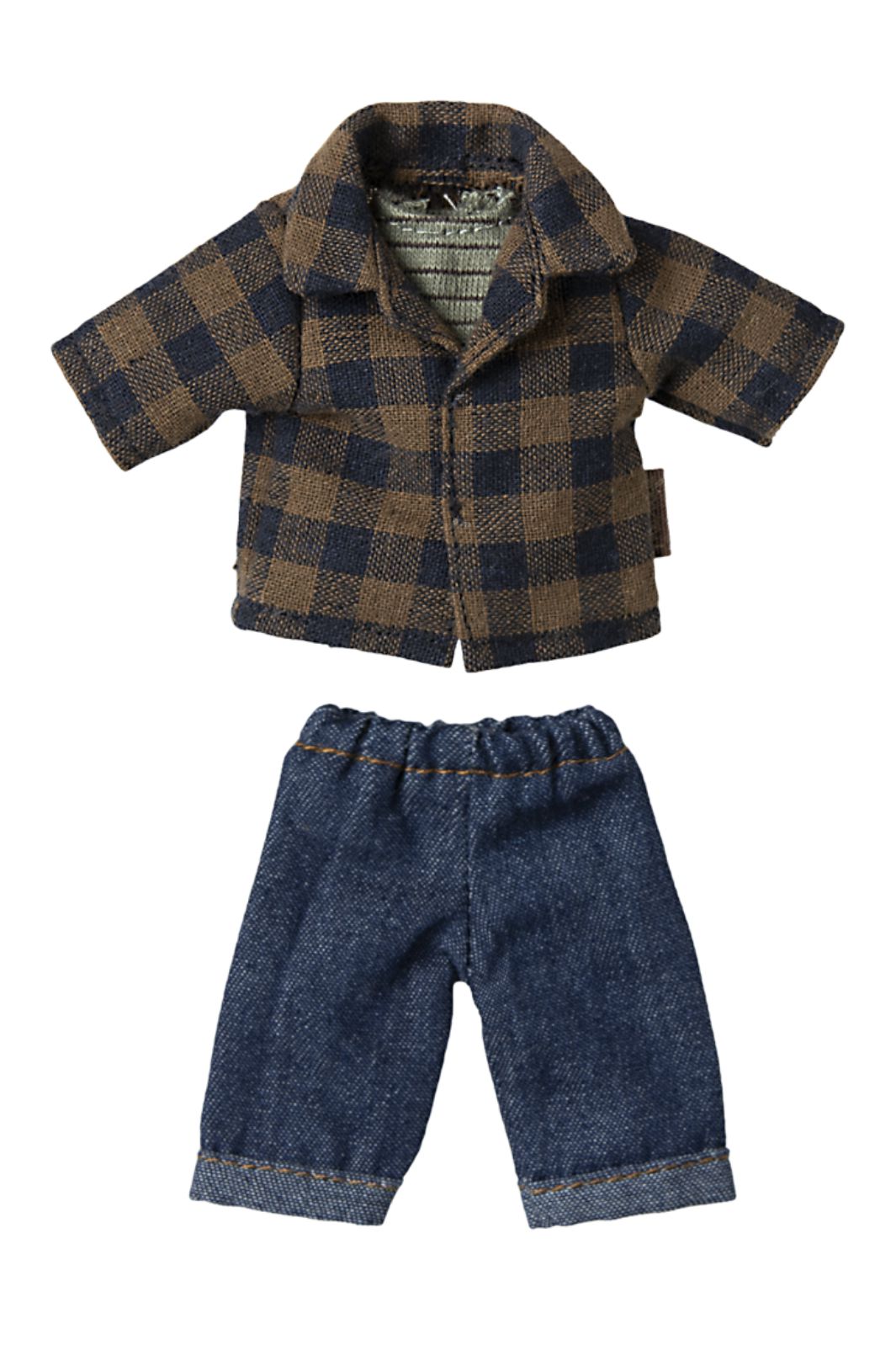 Maileg Ternet Brun Skjorte Og Bukser, Far Mus Kolor: Mum/Dad Mouse