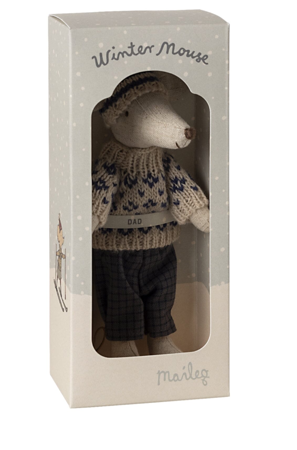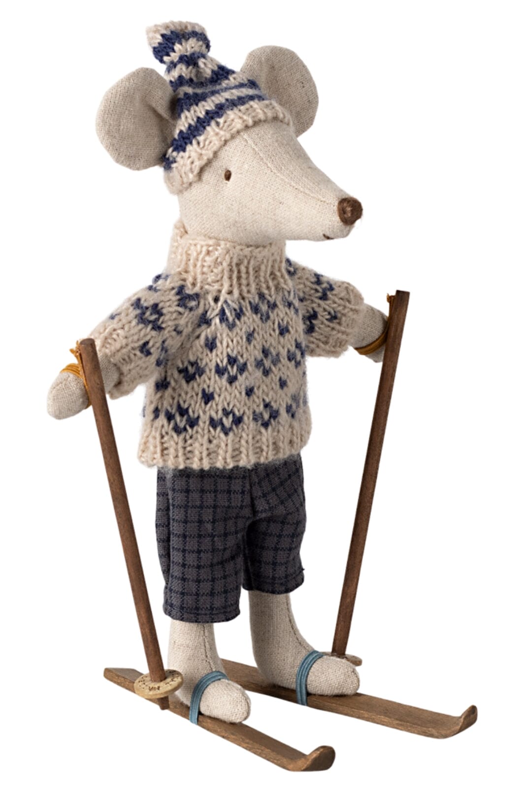 Maileg Vintermus Med Ski, Far Kolor: Blå