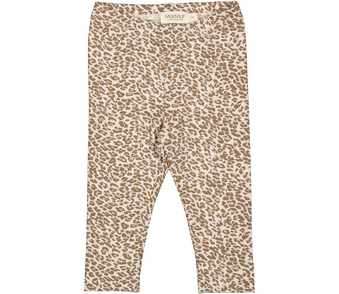 Legginsy od MarMar z leopardowym wzorem w brązowych odcieniach na jasnym tle. Mają długość do kostek i elastyczną talię, co zapewnia dużą swobodę ruchów.