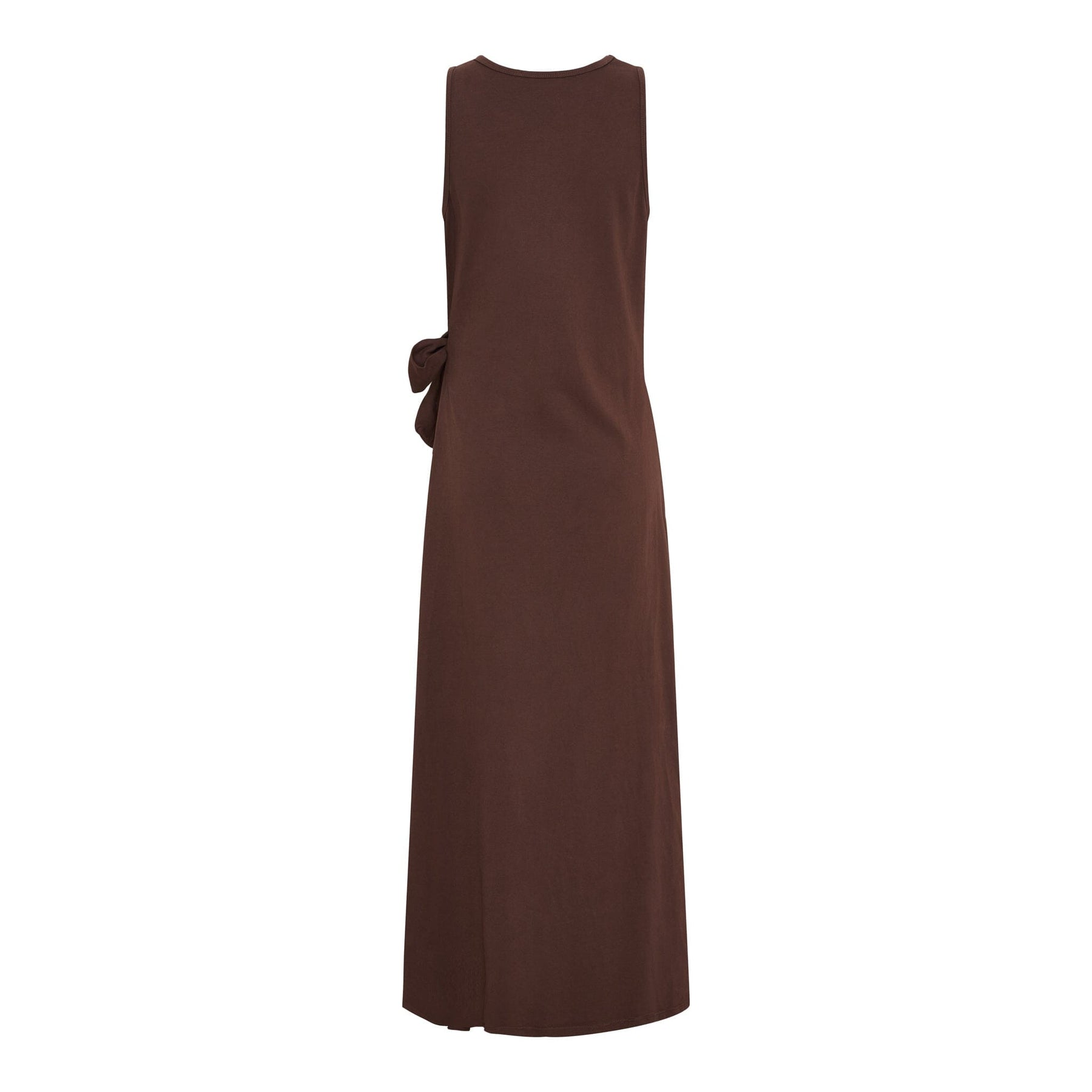 Brąsowa sukienka do ziemi od Marta Du Chateau o luźnym kroju. Sukienka ma okrągły dekolt i detal w postaci węzła z przodu.