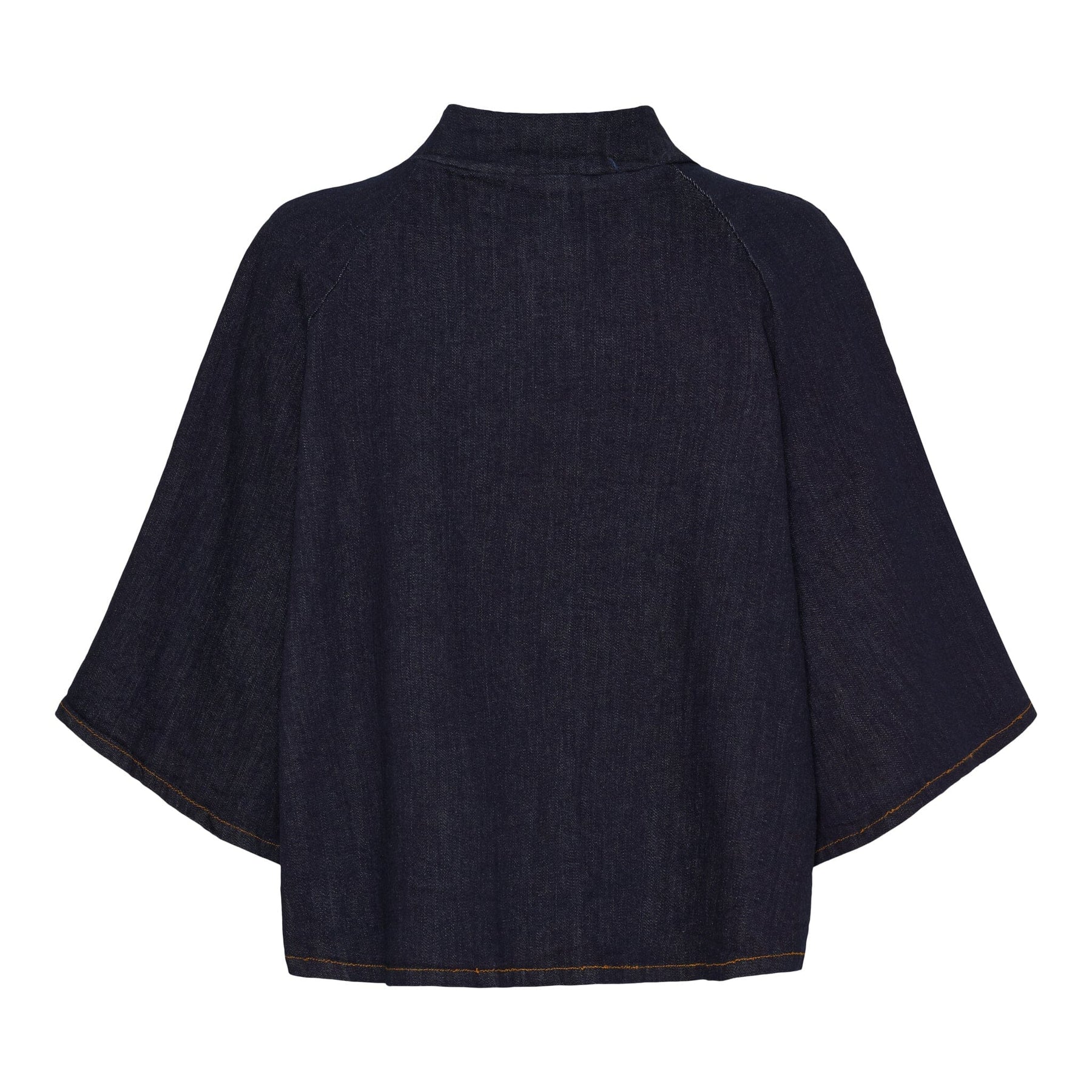 Granatowa kurtka od Marta Du Chateau, wykonana z bawełny z minimalną ilością elastanu. Kurtka ma wysoki kołnierz i luźny krój.