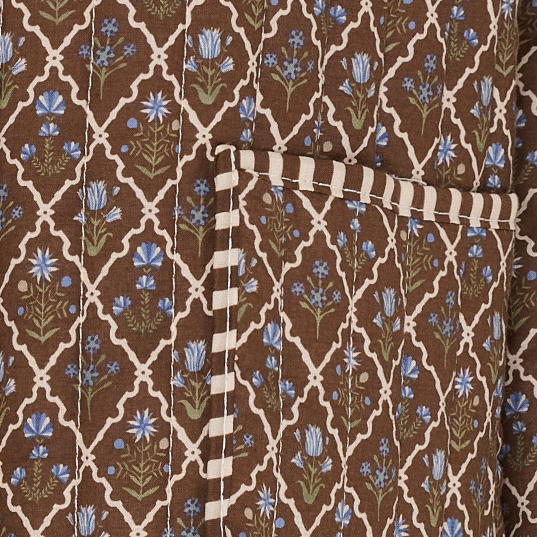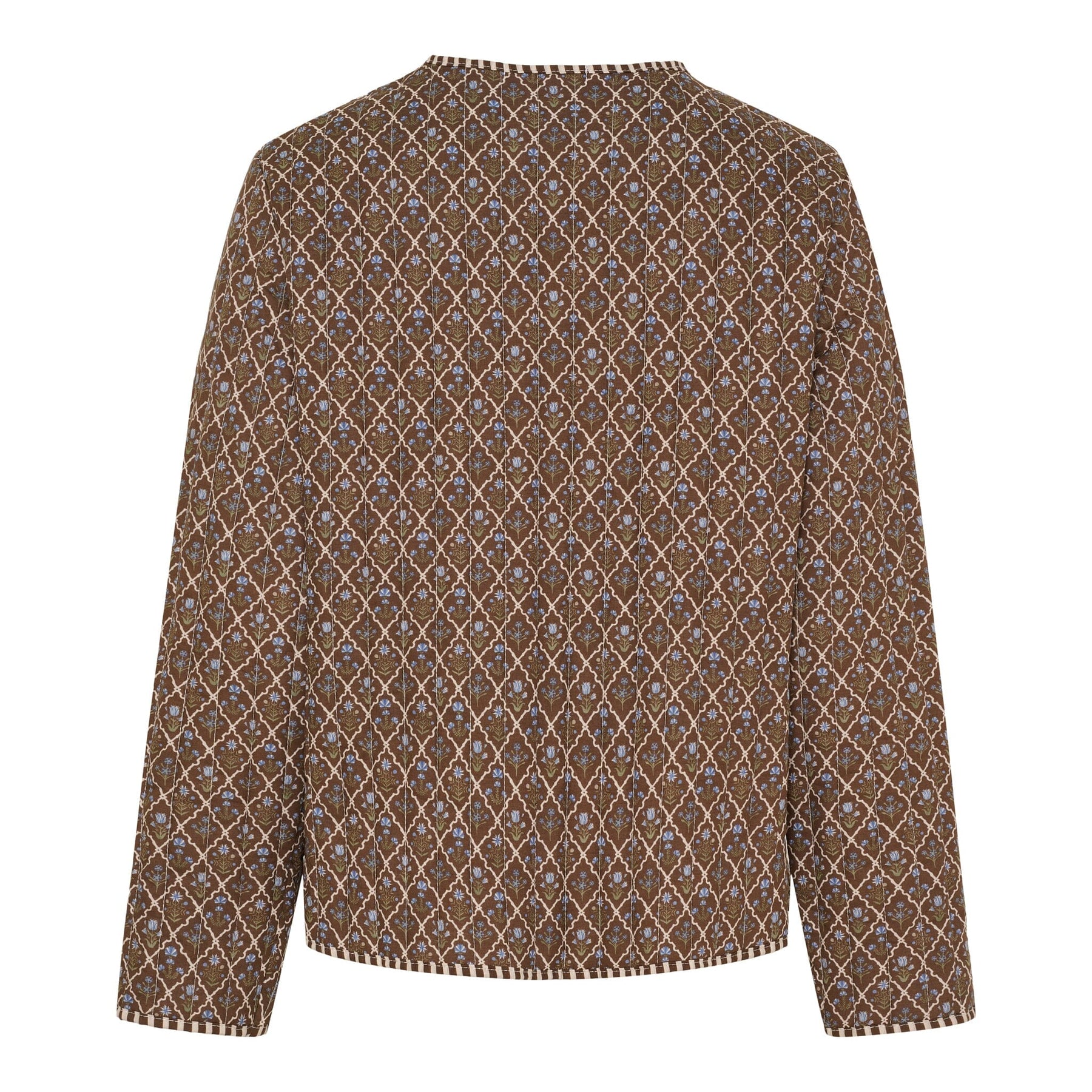 Brązowa kurtka od Marta Du Chateau z charakterystycznym wzorem diamentowym. Kurtka ma okrągły dekolt, guziki z przodu i dwie praktyczne kieszenie. Dekoracyjne szwy nadają kurtce dopracowany wygląd.
