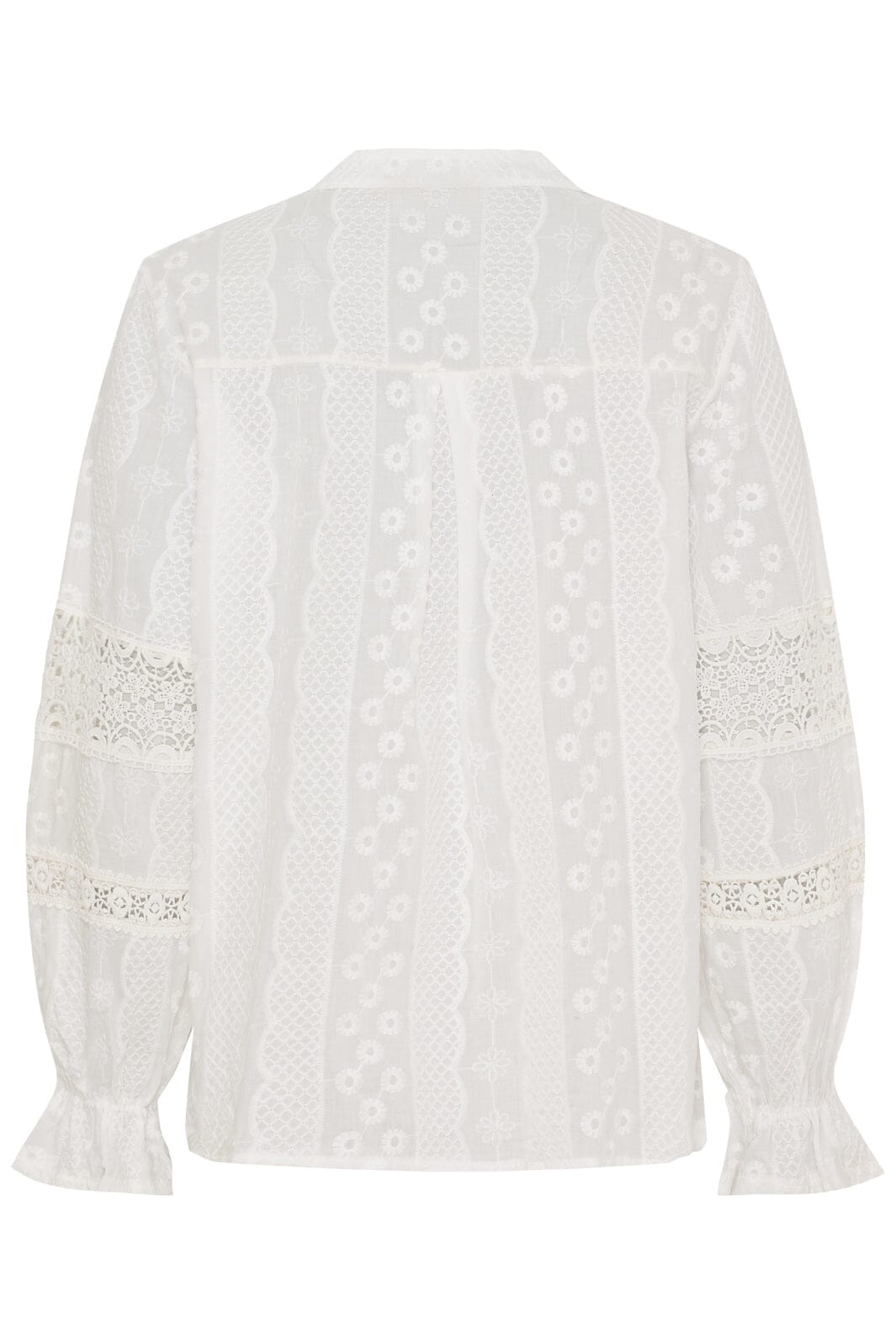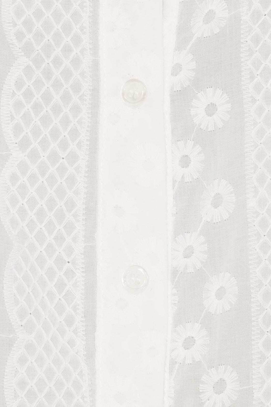 Biała koszula od Marta Du Chateau z haftem i koronkowymi detalami. Koszula ma kołnierzyk i guziki na całej długości. Długie rękawy mają falbany na krawędzi.