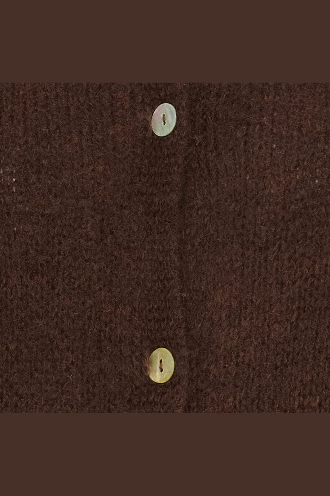 Brązowy kardigan od Marta Du Chateau z okrągłym dekoltem i zapięciem na guziki. Wykonany z miękkiej mieszanki naturalnych i syntetycznych włókien z rękawami 3/4.